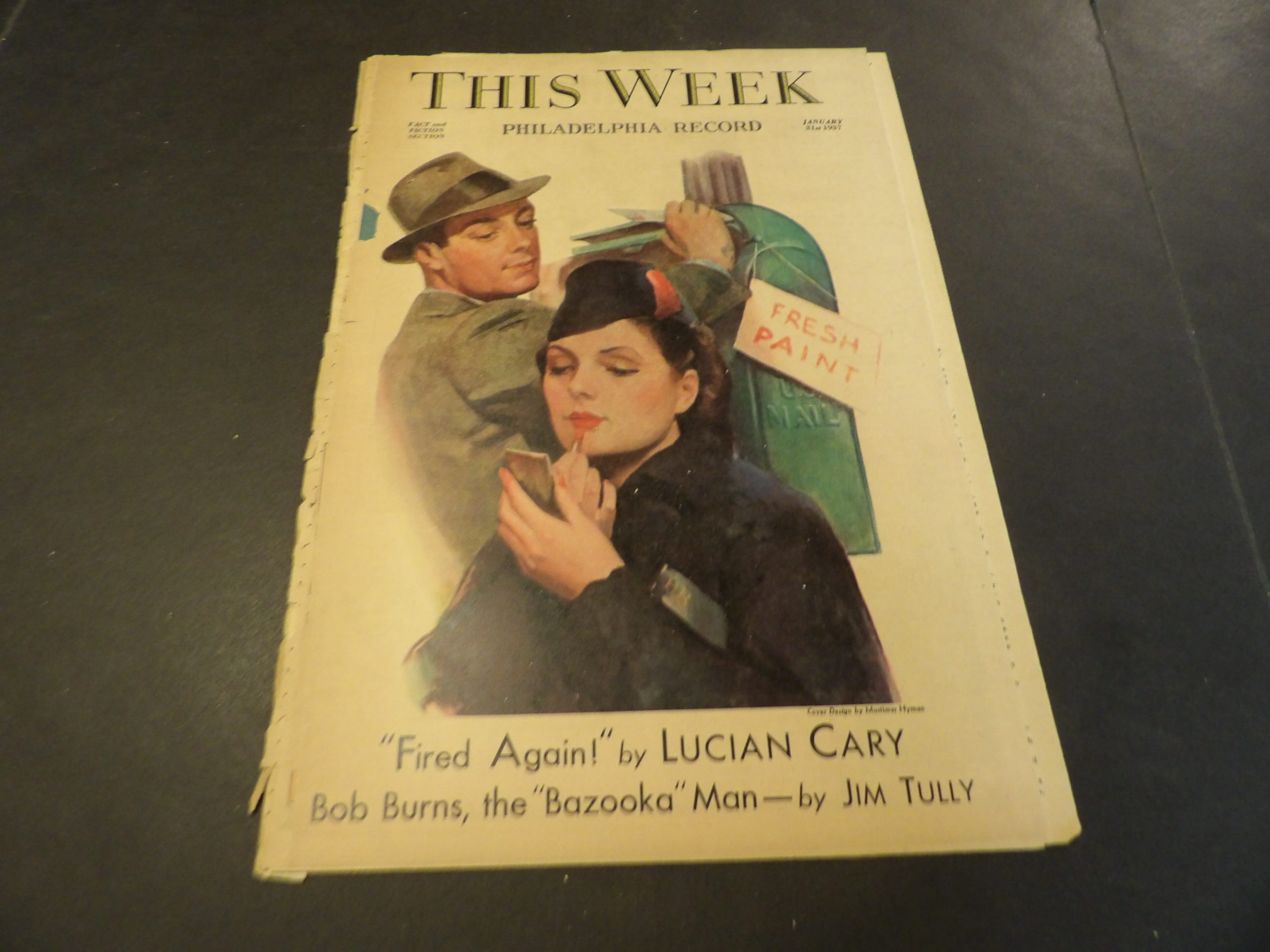 | SM0190-0089 | Philadephia Record - 1937/03/14 | 12-Tabs BW | $2.00 | 'This Week' Magazine, Color Cover by John Newton Howitt Tab-Size Color ad: Del Monte, Maxwell House, Sheaffer Pens |