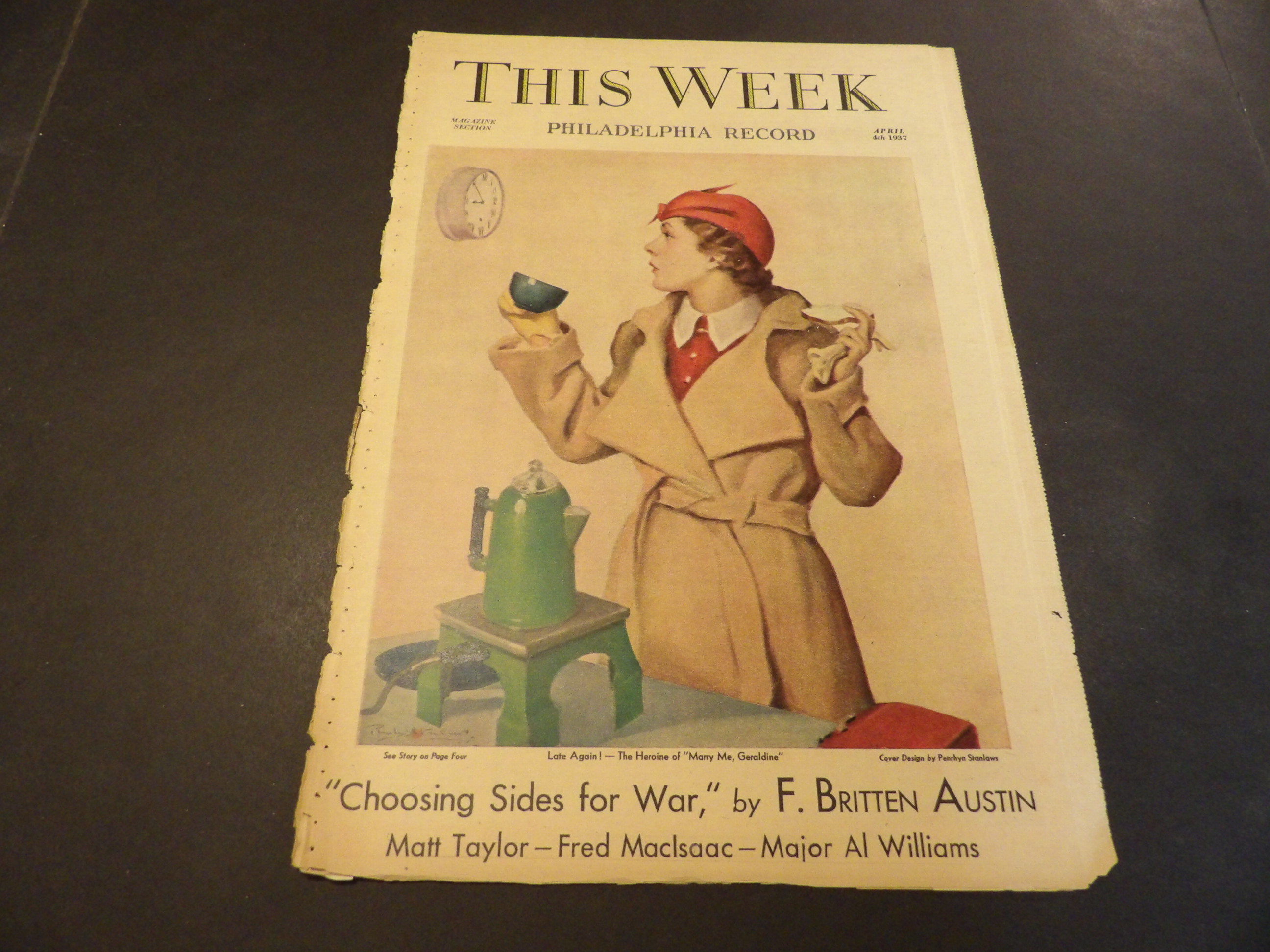 | SM0190-0092 | Philadephia Record - 1937/04/04 | 10-Tabs BW | $2.00 | 'This Week' Magazine, Color Cover by Penrhyn Stanlaws Tab-Size Color ad: Palmolive, Chase & Sanborn, Camay |