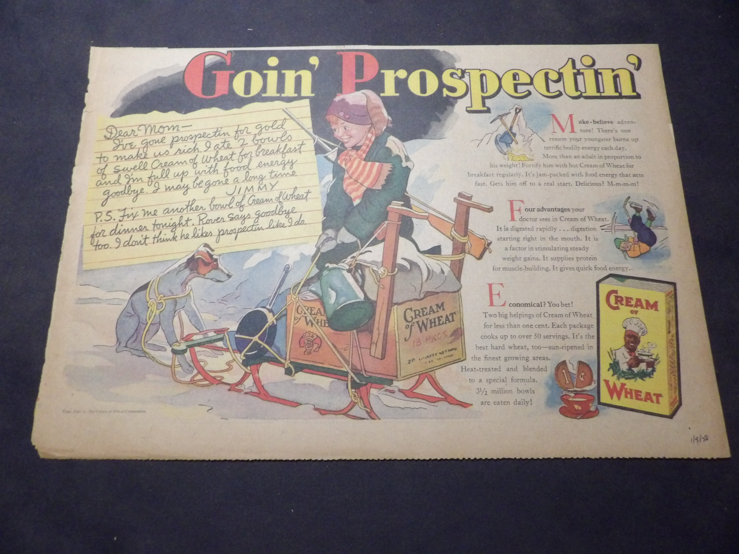 | A007-0228 | Cream of Wheat | 1938/01/09 - H | G/G/VG | $8.00 | 'Goin' Prospectin' by Harry Anderson, On reverse Scott's Emulsion ad(H) |