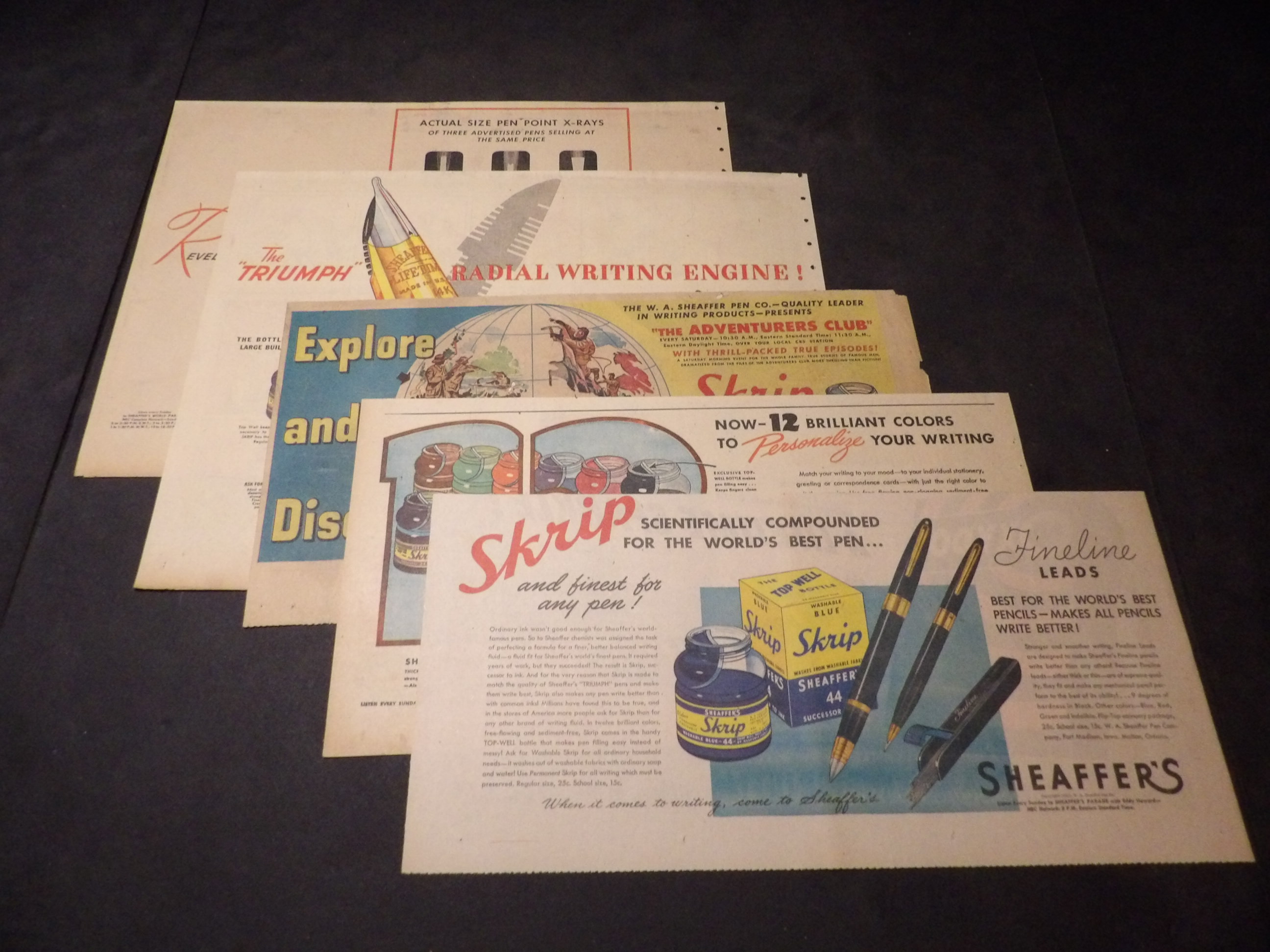 | A018-0207 | Sheaffer Skrip Ink | 1940's - 5H | G-VG/G-VG/VG | $10.00 | On reverse Ivory Soap ad(1TH), Dreft ad(1TH), BWP Barney Google(1TH), Ipana ad(1TH), Sperry Wheat Hearts ad(1TH) |