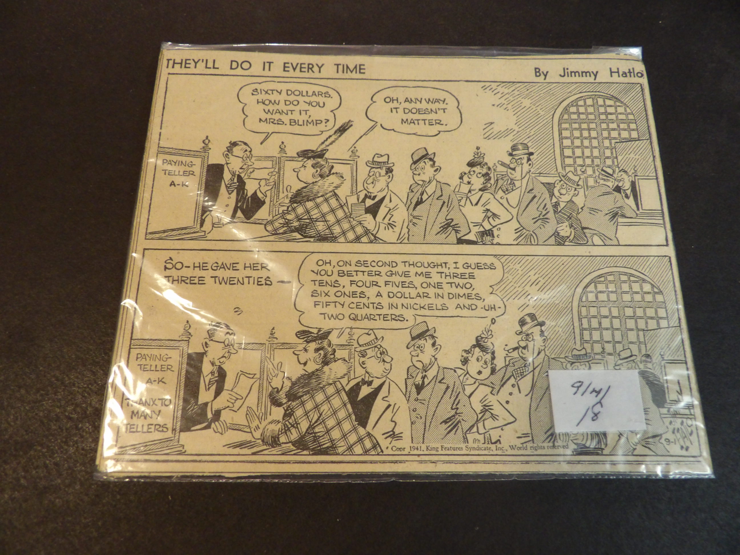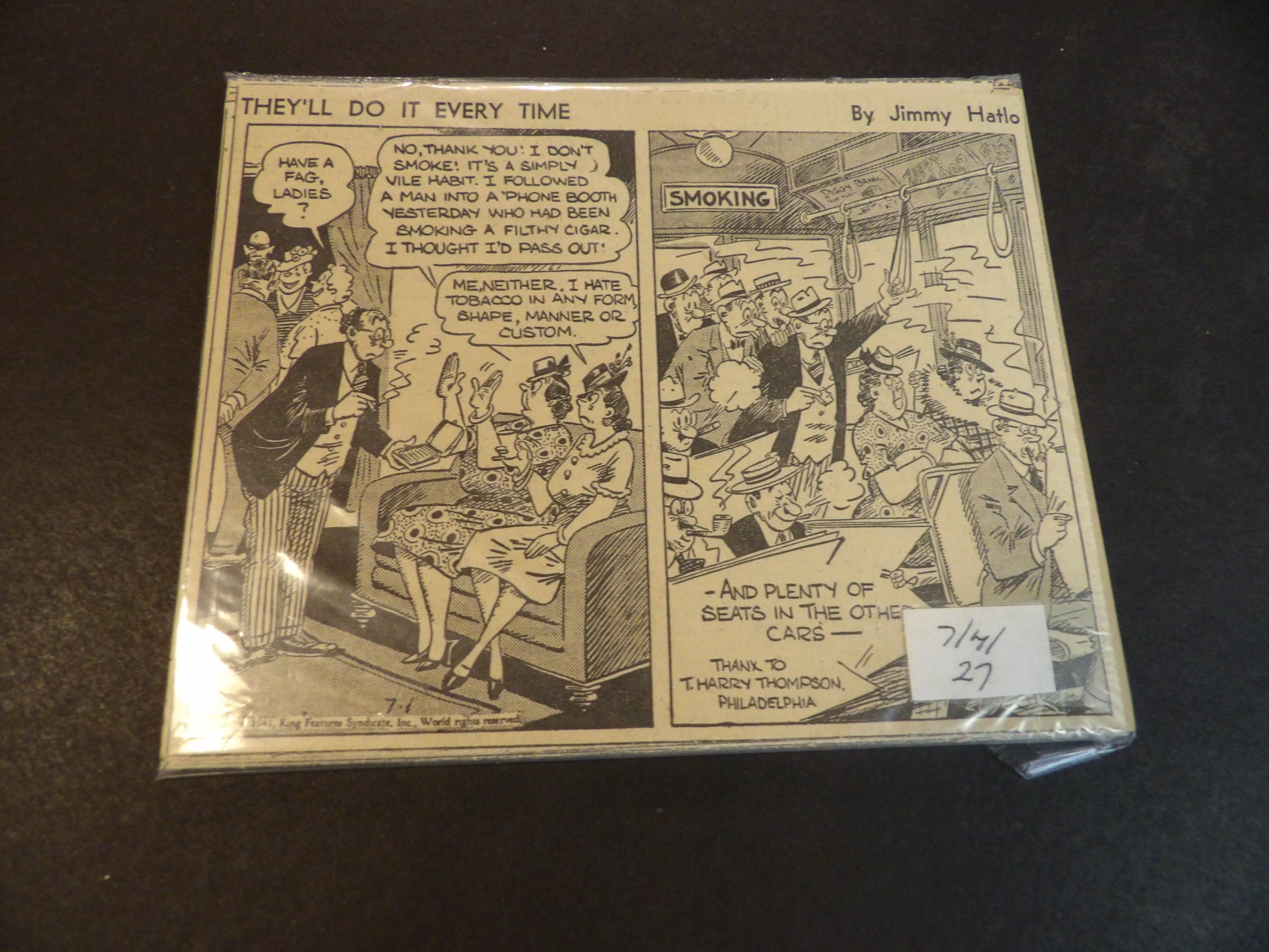 | D026-0118 | They'll Do it Every Time | 1941/07 - 27 | 5x6R | G | $5.00 | by Jimmy Hatlo |