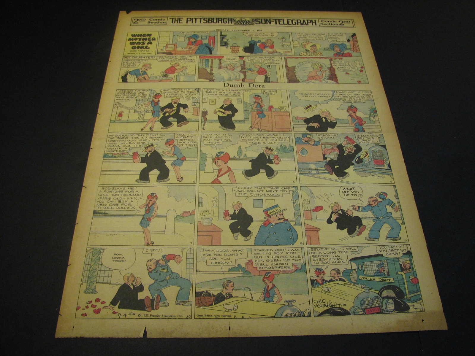 | S0470-0094 | 1927/08/14 - F | G/G/G | $3.00 | w/When Mother was a girl, On reverse Mutt and Jeff(TT), Premium ads(TH) |