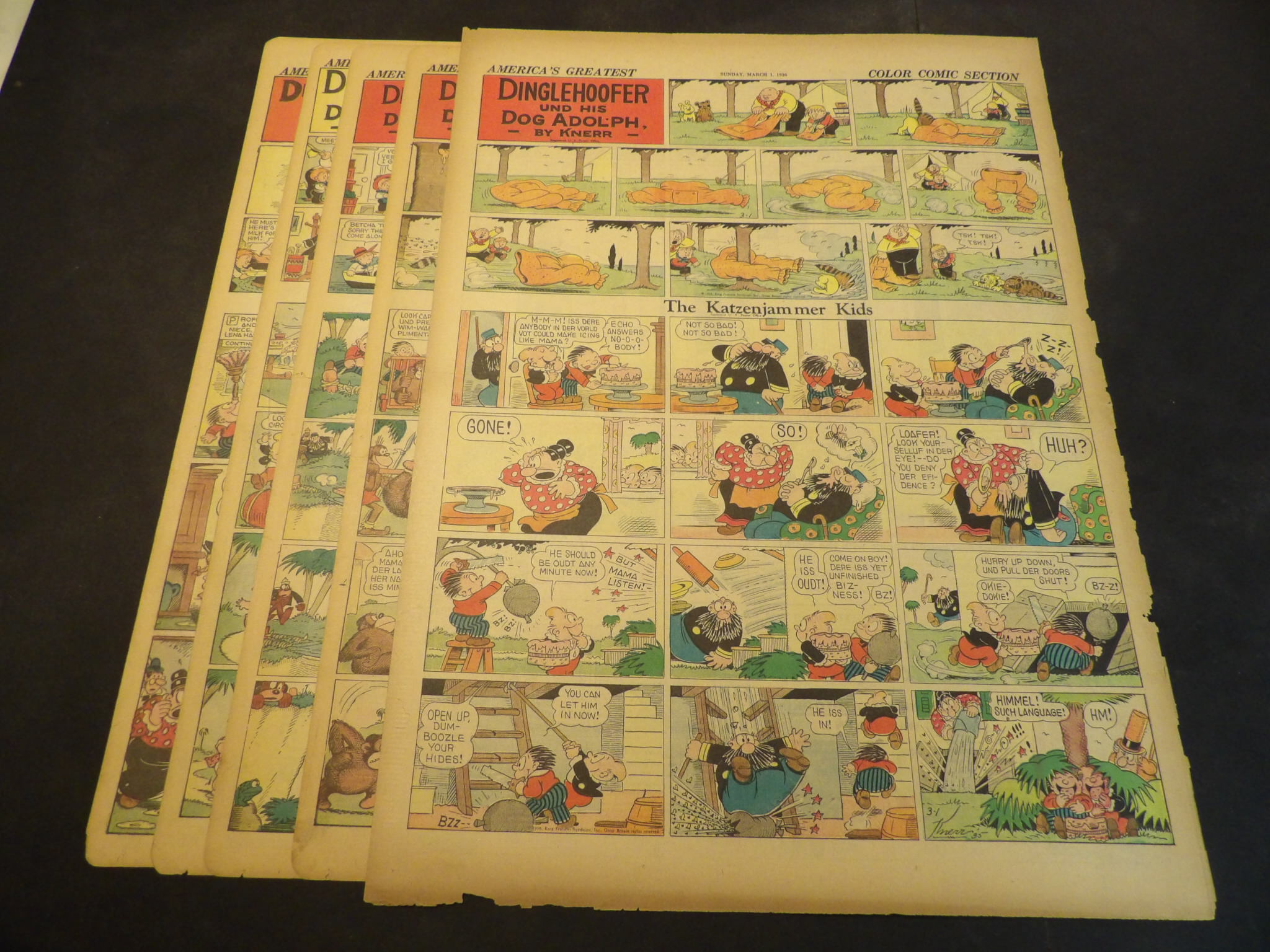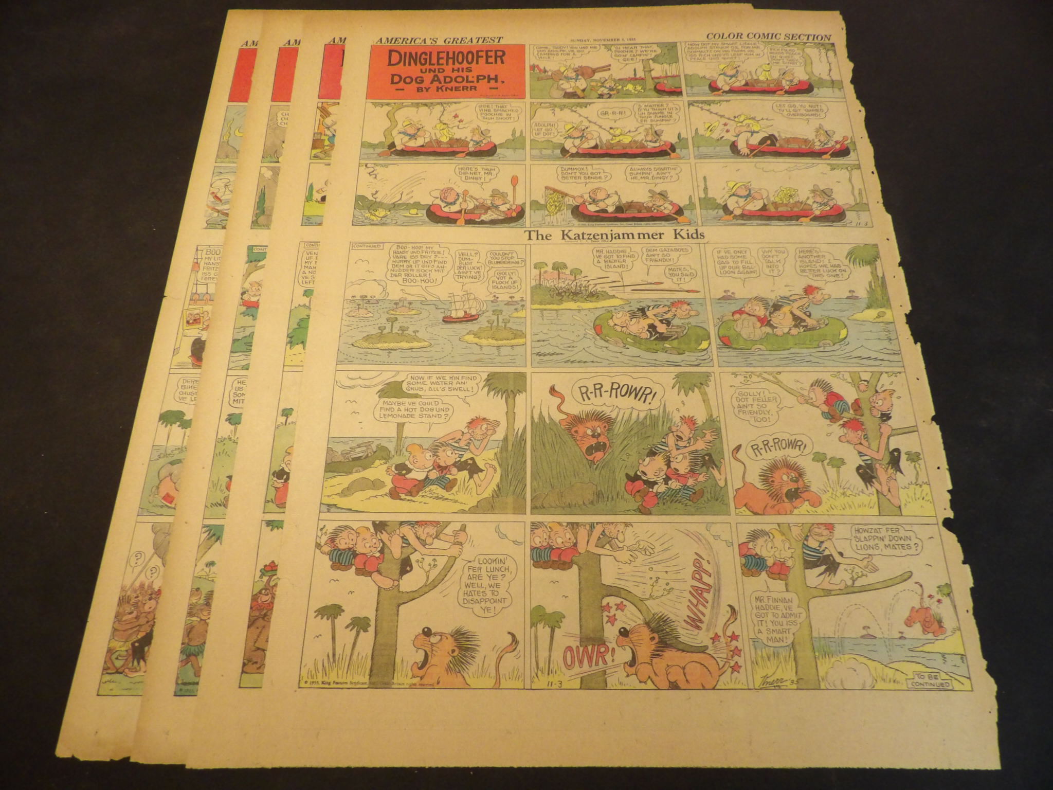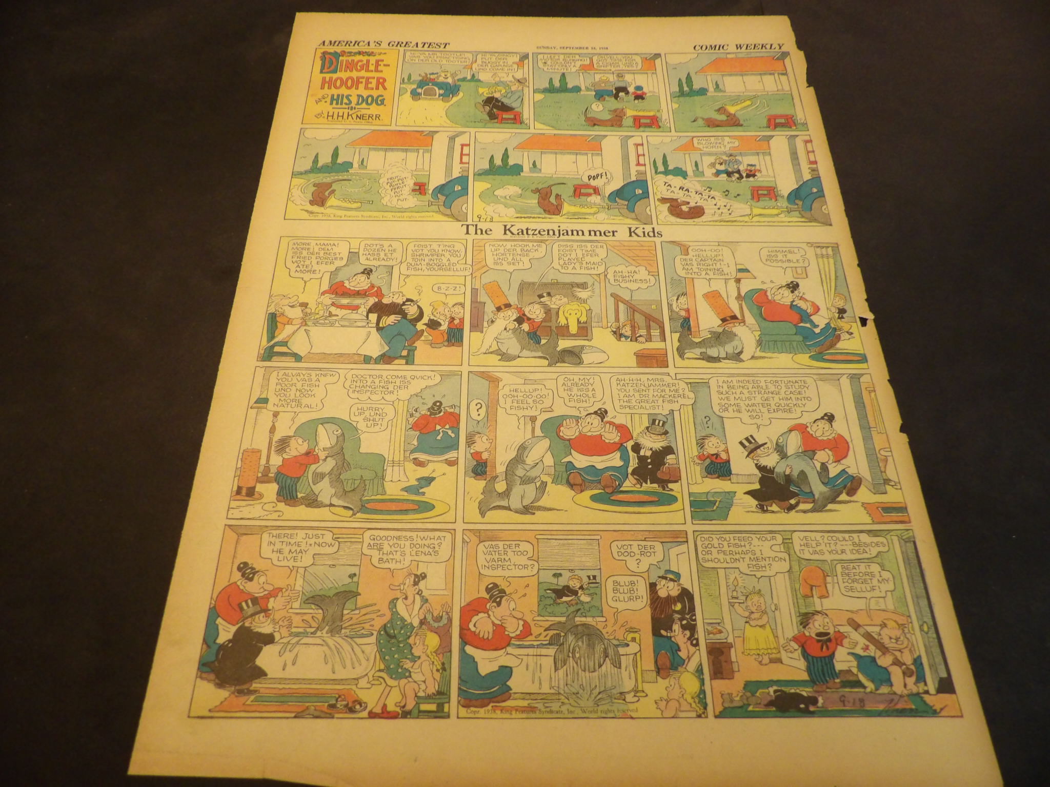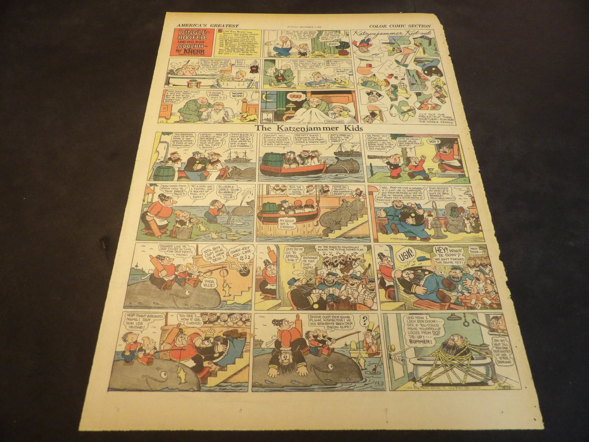 | A note about the Katzenjammer Kids & Captain & the Kids - In June 1914 Rudolph Dirks, creator of the Katzenjammer Kids, switched from the Hearst Syndicate to the World Feature Syndicate. In a court battle, Dirks was allowed to continue producing the kids, but the name 'Katzenjammer Kids' was awarded to Hearst. From the end of 1914 onward, 'the Kids' would be produced by two totally different artists working for different syndicates. Dirks would begin producing the strip under various titles, but eventually would settle on 'Captain and the Kids'. In November 1914 Hearst would hire Harold Knerr and continue the strip under the 'Katzenjammer Kids' title. To see post-1914-switch Dirks offerings, check out my listings for 'Captain and the Kids'. |