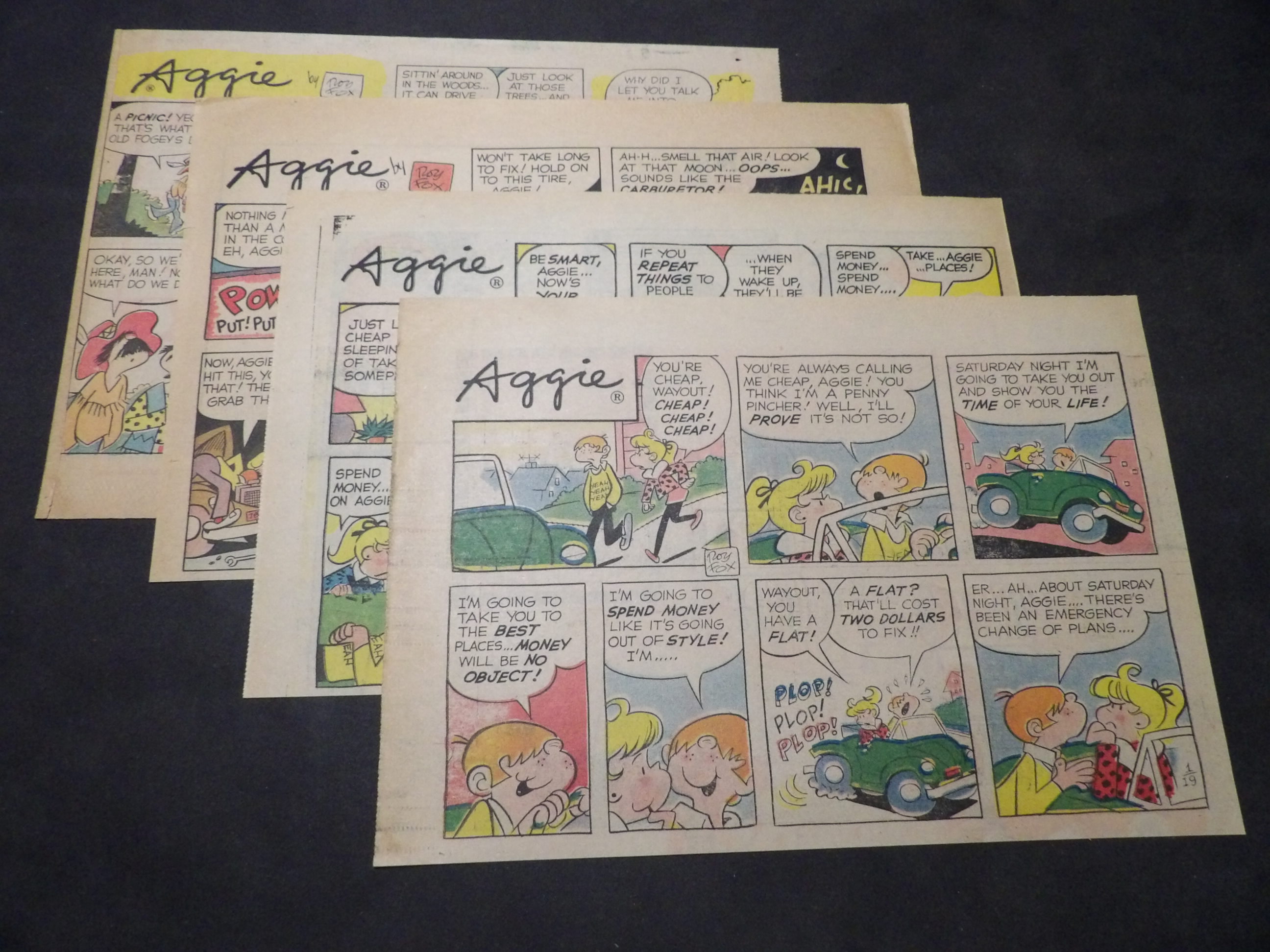 | 0901-0224 | Aggie Mack | 1968 - 2TH, 12HT | G/FR-G/G | $4.00 | by Rory Fox, On reverse Winnie Winkle(1TH), Super Duper(1HT), Beany(1HT), Pottsy(3HT) (1/14, 1/28, 2/11, 2/18, 3/3-3/17, 4/7, 4/14, 5/12, 5/19, 6/2, 9/15, 12/15) |