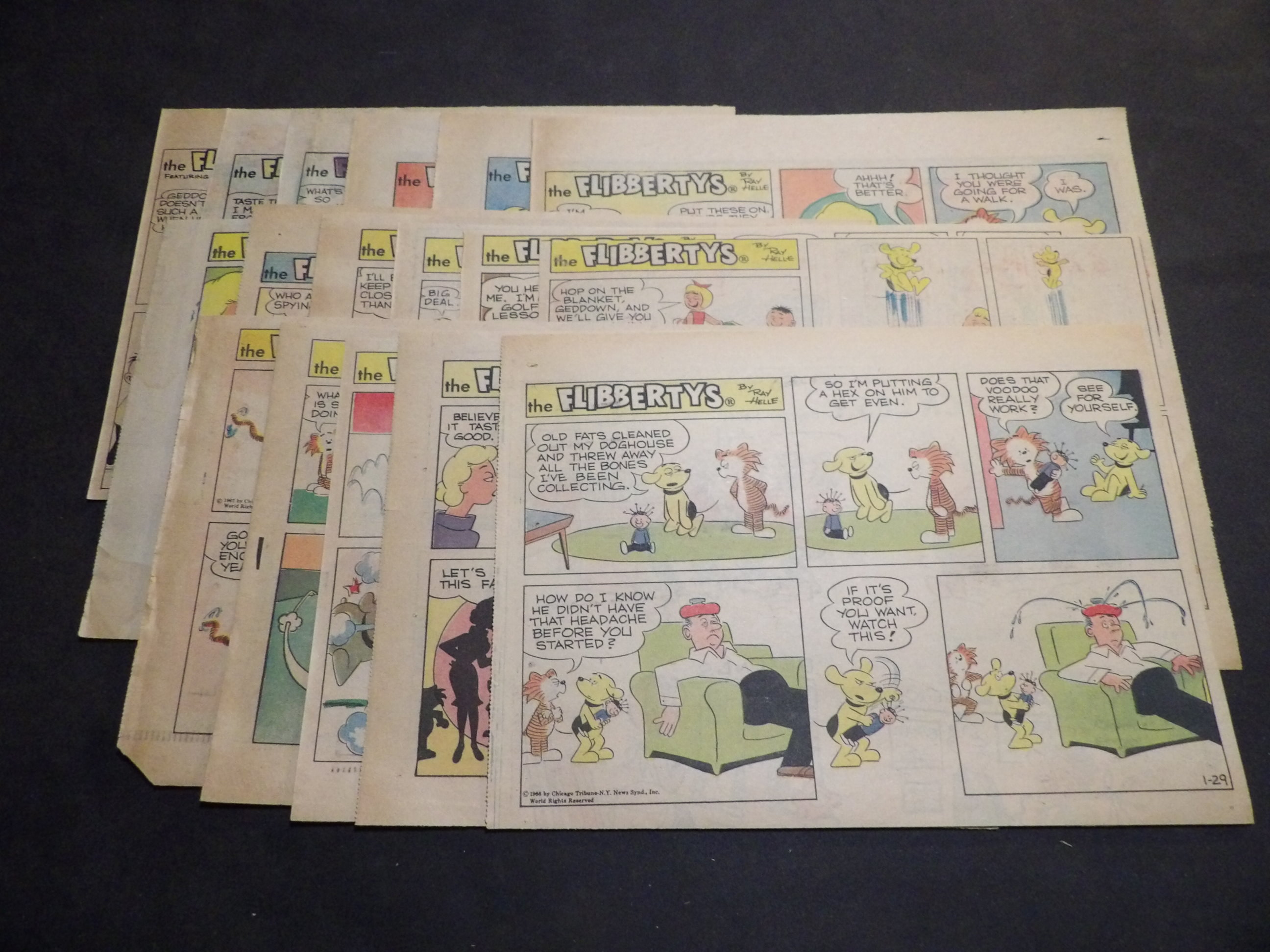 | 0905-0142 | Flibbertys, The | 1966-69 - 1TH, 19HT | G-VG/G-VG/VG | $7.75 | by Ray Helle, On reverse True Classroom Fliubs & Fluffs(3HT), Louie(1HT), This Man's Army(1HT), Aggie Mack(1HT), Rick O'Shay(1HT), Pottsy(1HT), Coca-Cola ad featuring Joe Pepitone & Ron Swoboda (1960:2/28 1962:9/23 1963:6/1 1966:1/29 1967:3/12, 5/28-6/11, 7/9, 7/28, 8/6, 10/15-10/29 1968:1/14, 2/11, 2/18, 3/17, 4/7 1969:10/12) |