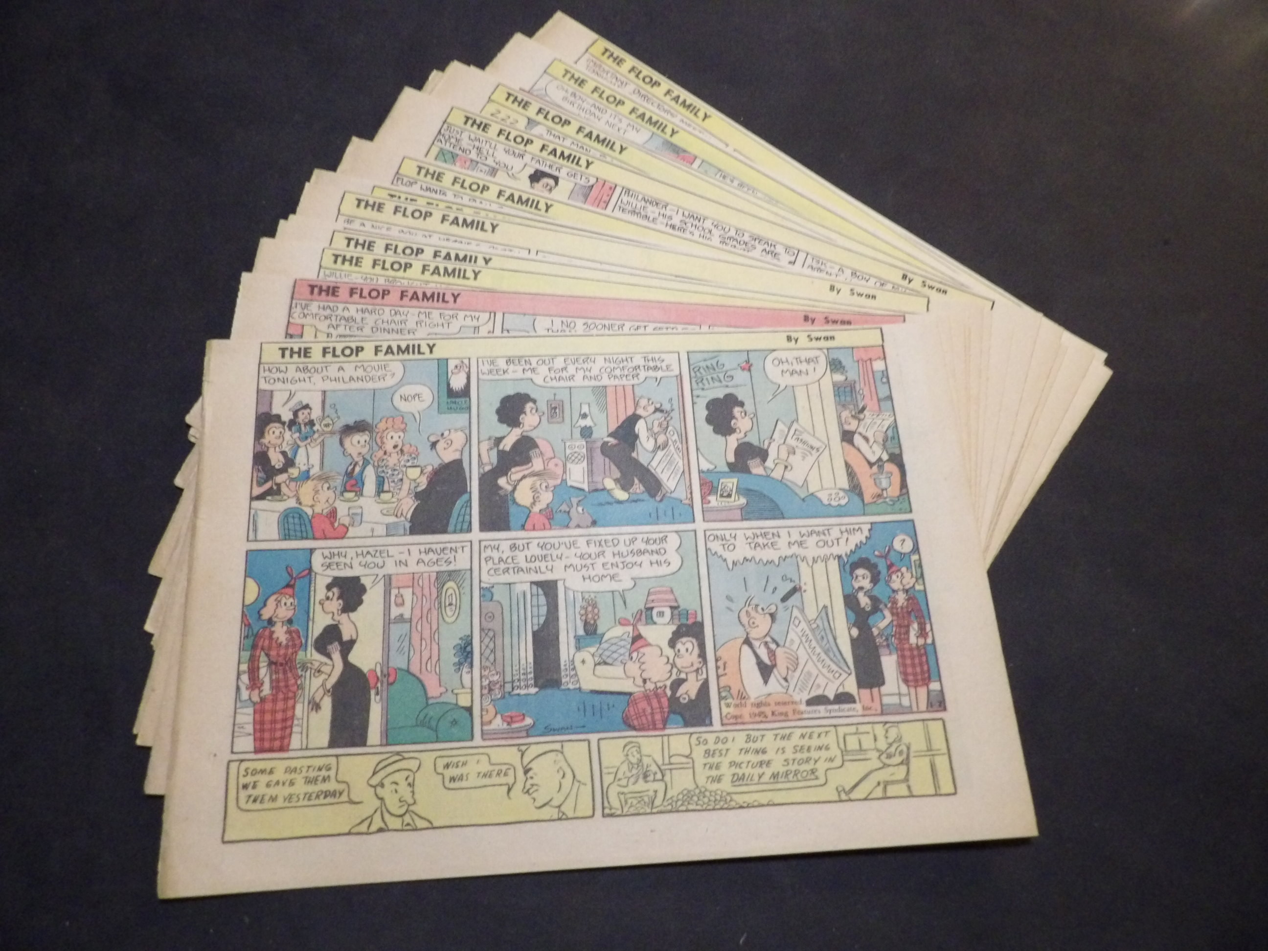 | 0905-0146 | Flop Family | 1946 - 4HT | G-VG/G-VG/VG | $4.00 | by George Swanson, On reverse Colgate ad(2HT), Listerine ad(1HT) (9/23, 11/3-11/17) |