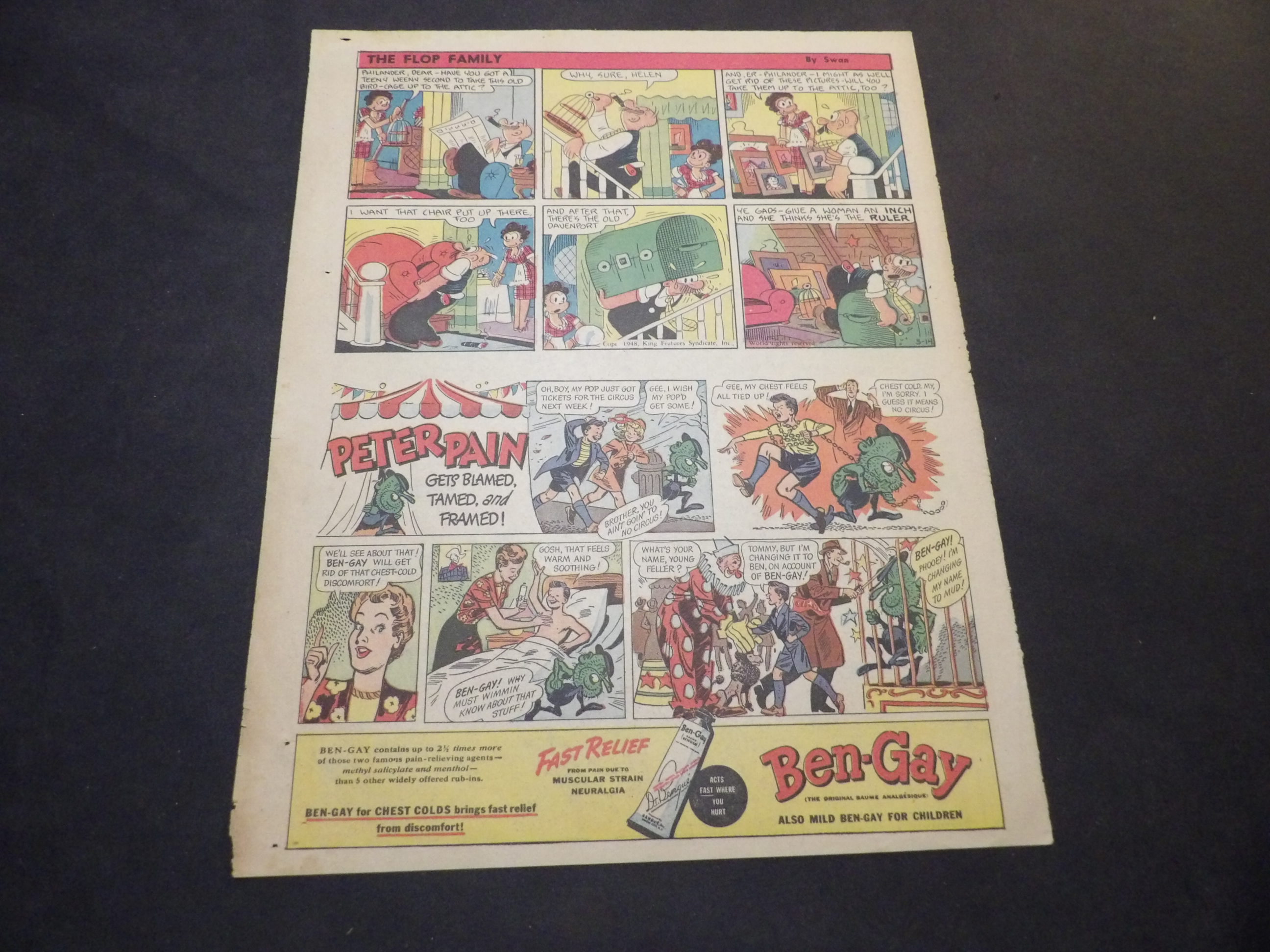 | 0905-0148 | Flop Family | 1948/03/14 - T | G-VG/G-VG/VG | $1.00 | half-tab on Tab w/Ben-Gay ad(HT), by George Swanson, On reverse Bobby Sox(HT), Kelloggs ad(HT) |