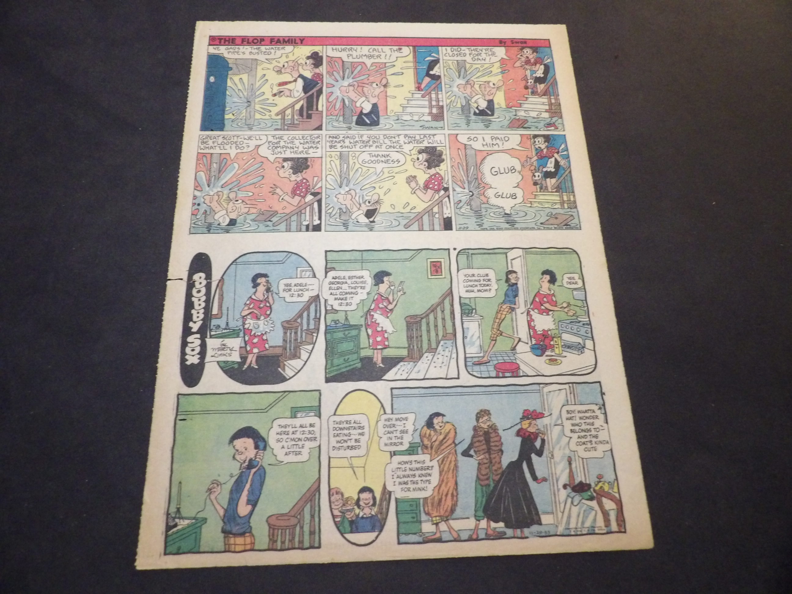 | 0905-0149 | Flop Family | 1953/11/29 - T | G-VG/G-VG/VG | $1.00 | half-tab on Tab w/Bobby Sox(HT) by George Swanson, On reverse Freckles(HT), Ben-Gay ad(HT) |