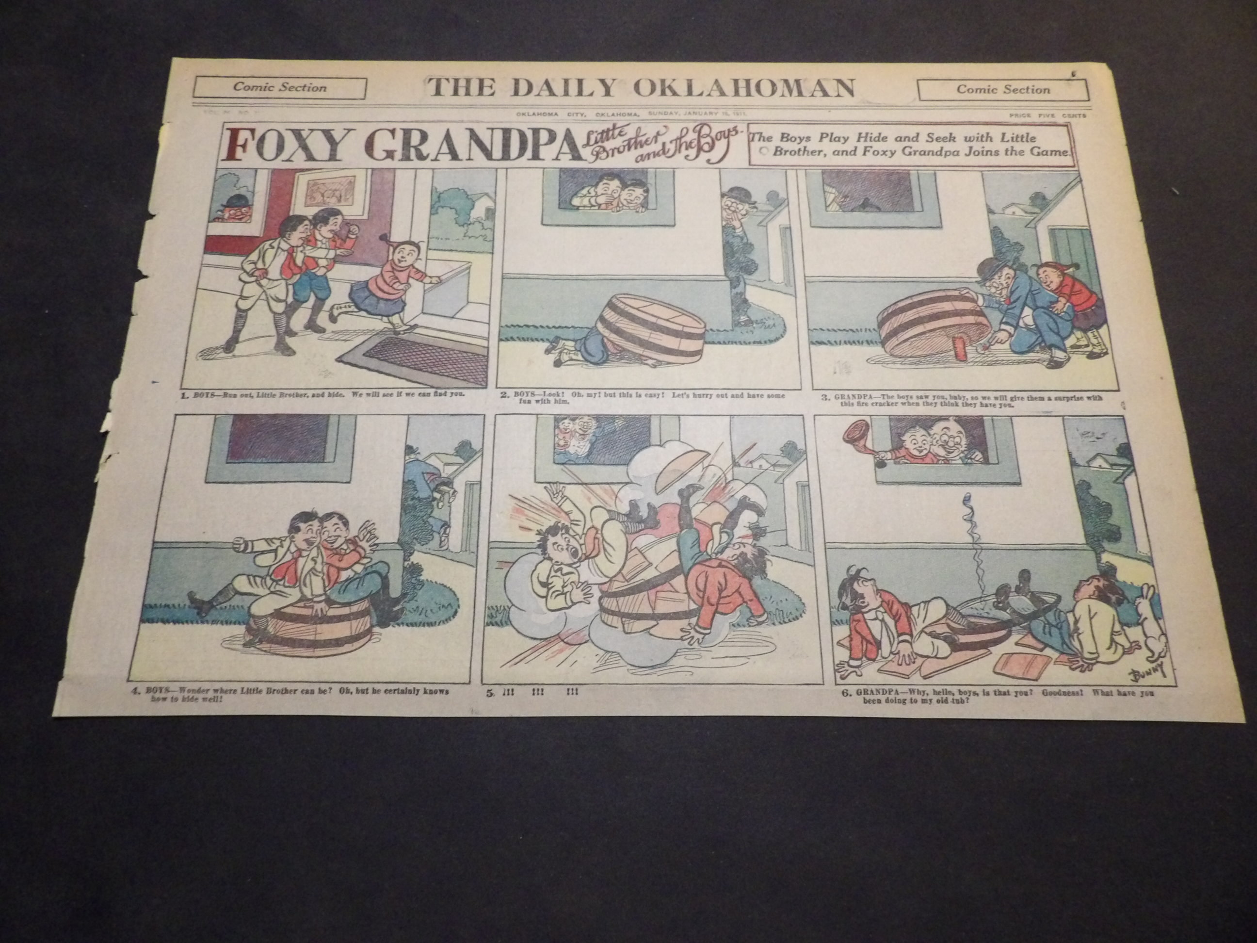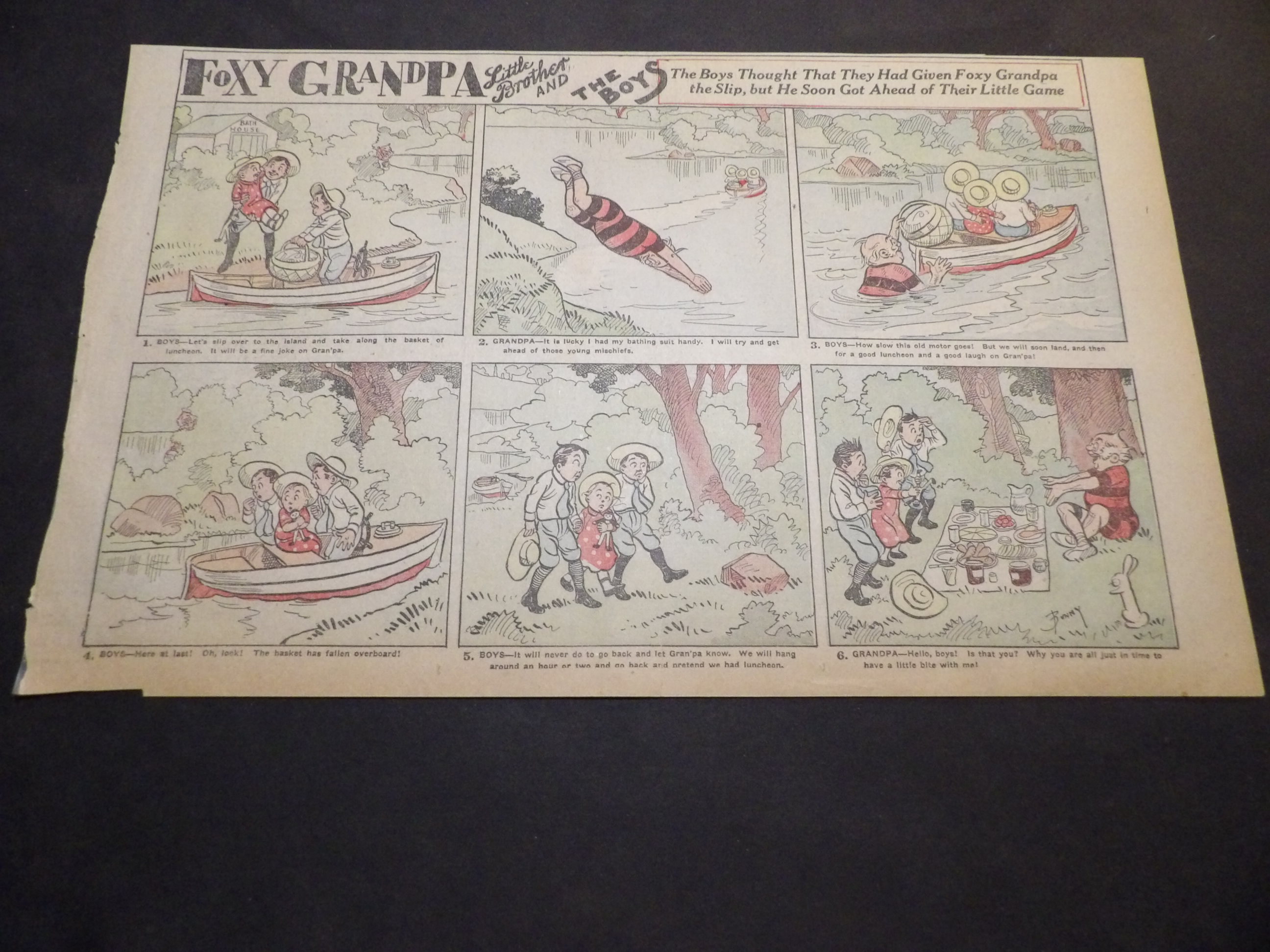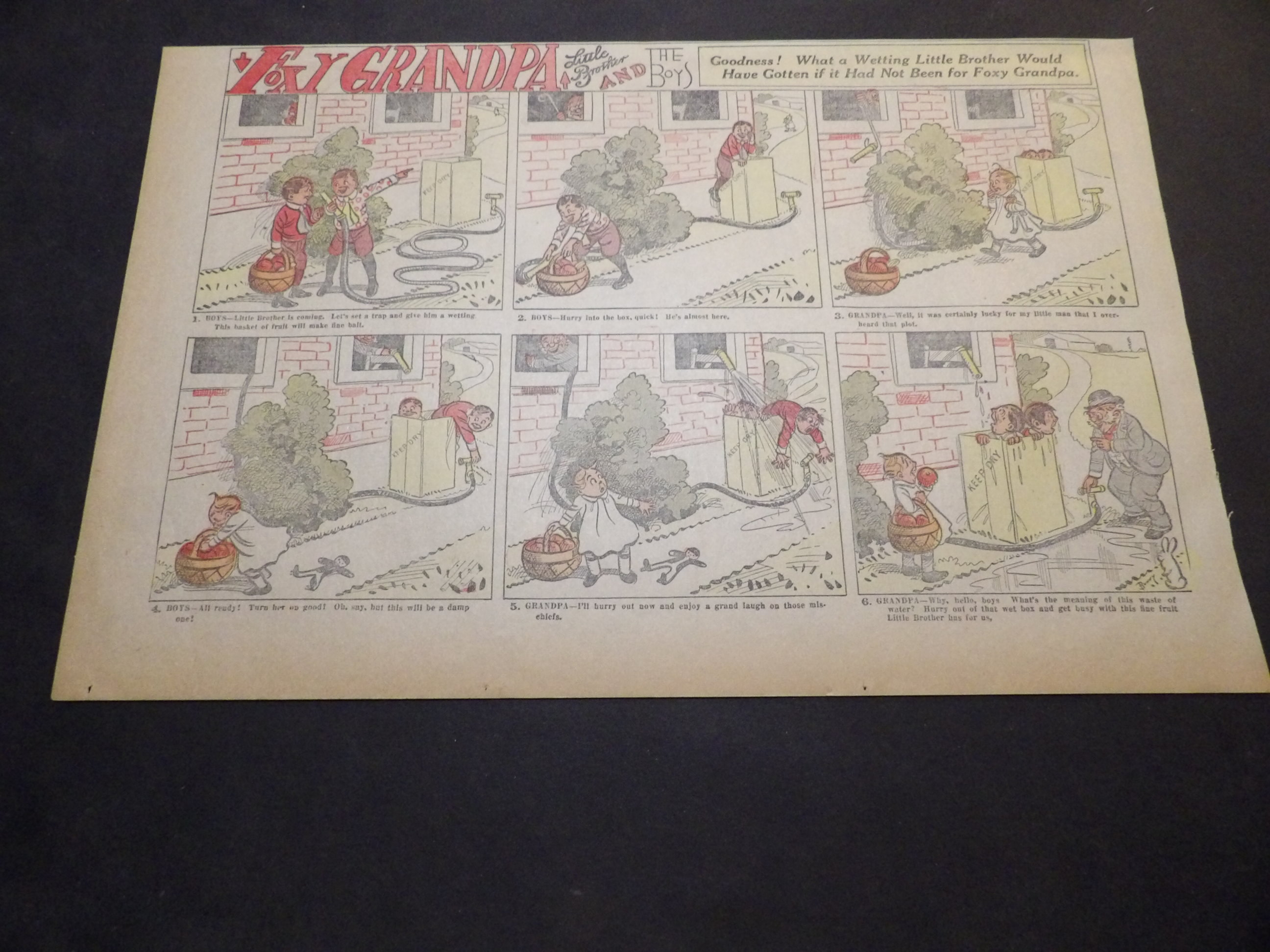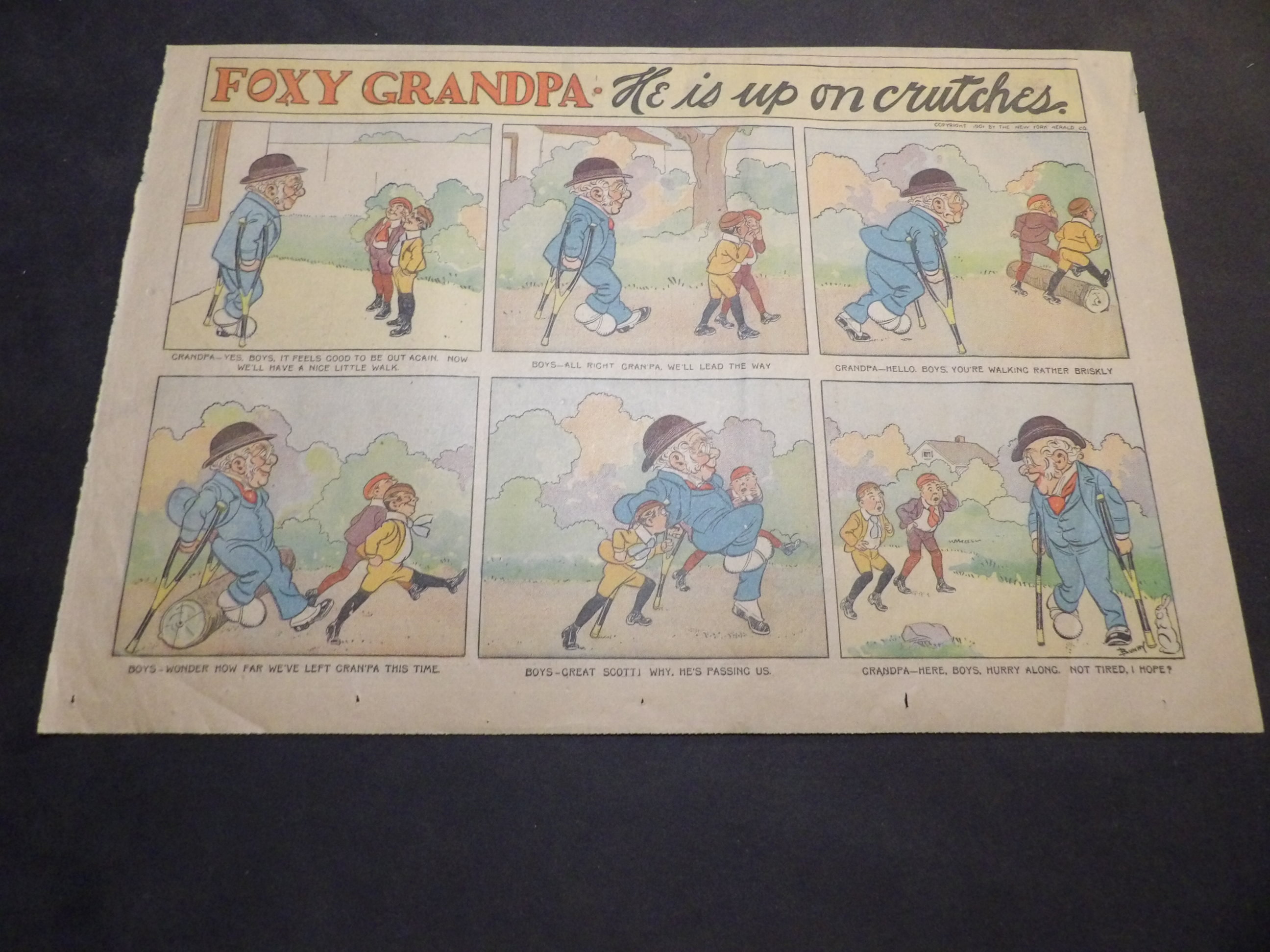 | 0905-0121 | Foxy Grandpa | 1902/02/16 - H | G/G/G | $6.00 | by Bunny Shultze, on reverse BWO 'He made faces at the dog' by Jimmy Swinnerton |