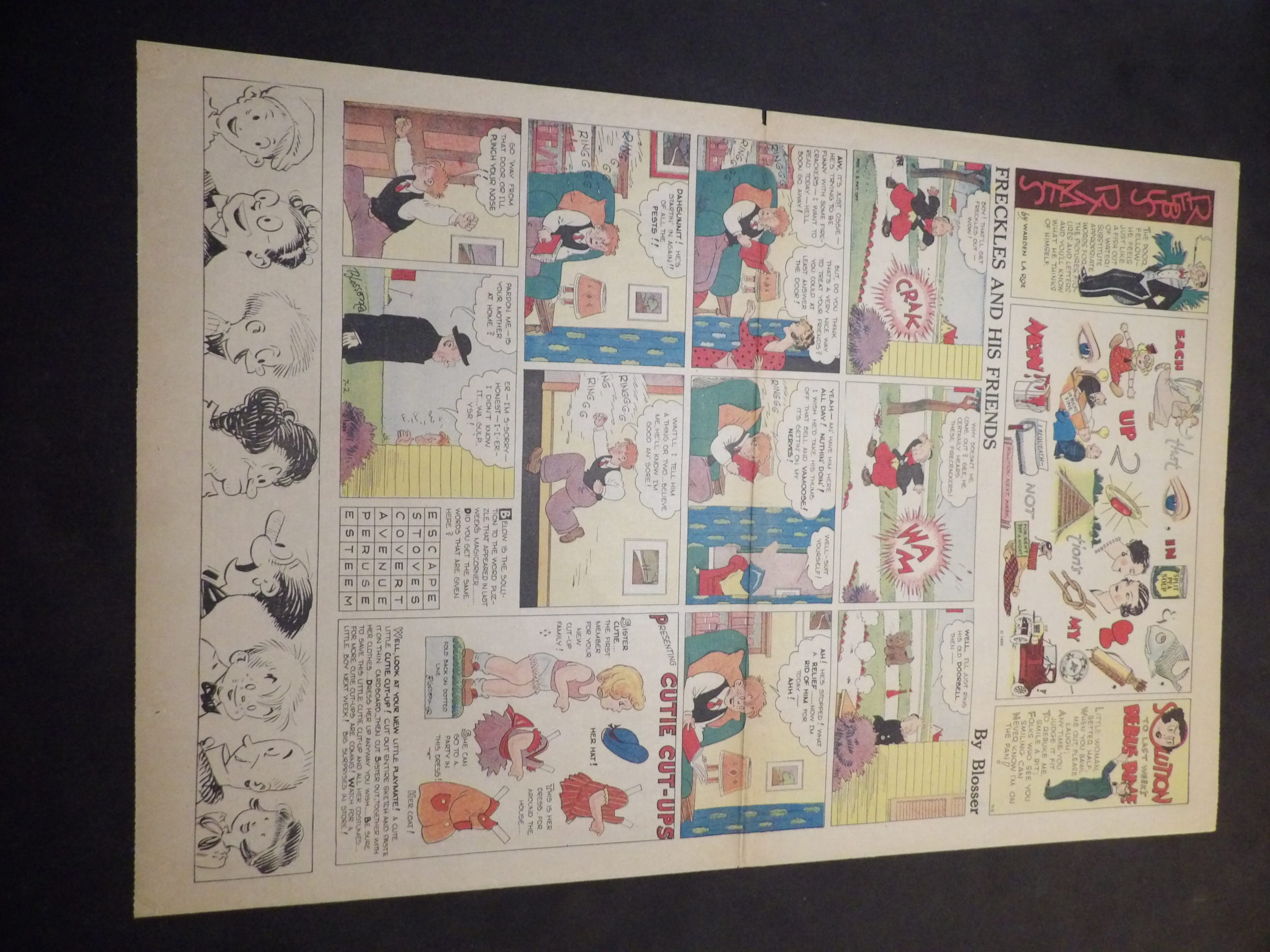 | 0905-0064 | Freckles | 1942 - 35H | G/FR-G/G | $17.50 | by Merrill Blosser, On reverse Jane Arden(3H), Life's Like That(1H), Mary Worth(1H), Napoleon(2H) (1/4-2/15, 3/22-5/17, 6/7-7/12,8/23, 8/30, 9/13, 9/20, 10/4-11/8, 11/22, 12/20, 12/27) |