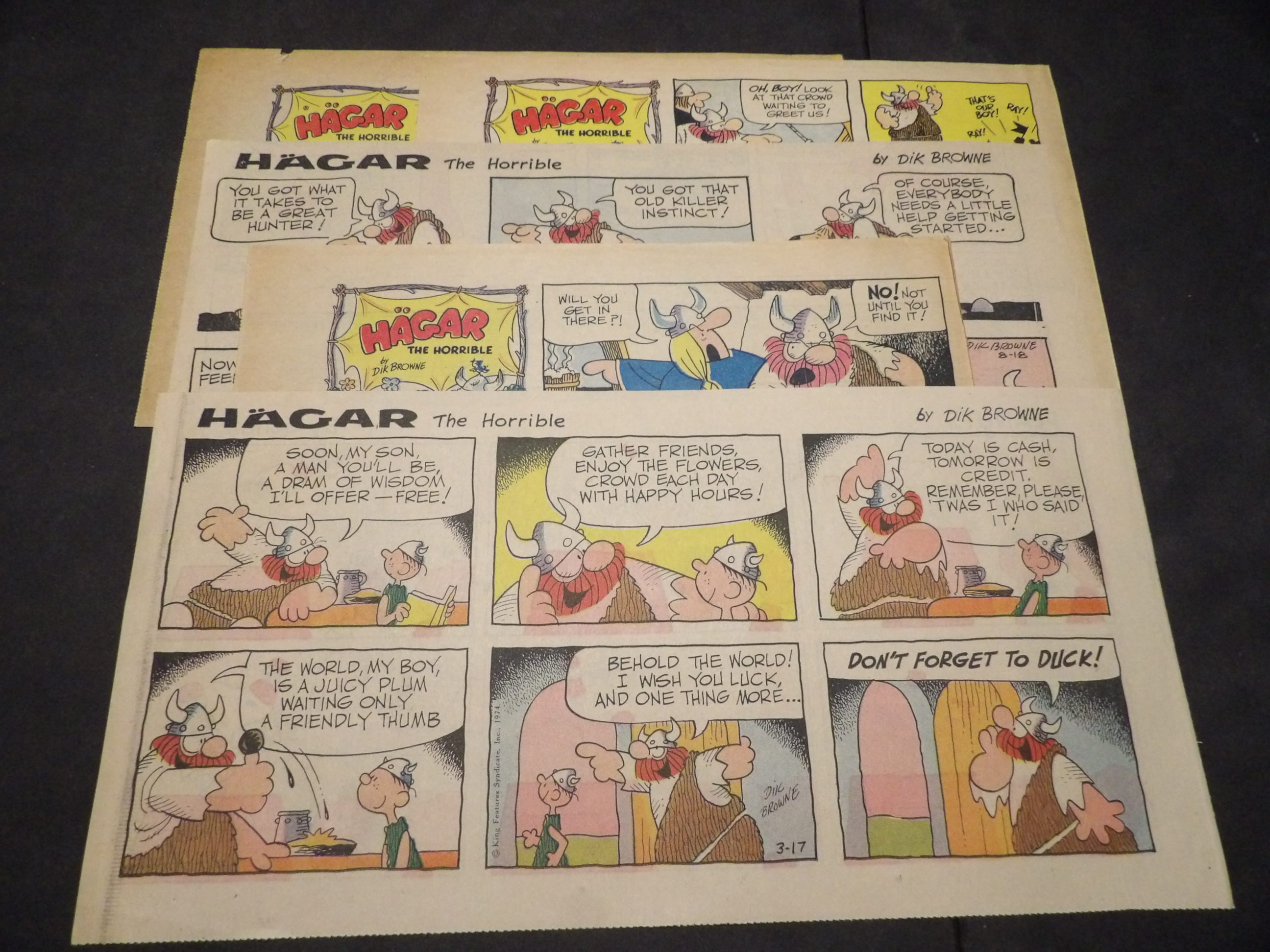 | 0906-0120 | Hagar the Horrible | 1974 - 2TH, 3HT | G-VG/G-VG/GVG | $3.75 | by Dik Browne, On reverse Peanuts(1TH) (3/17, 7/7, 8/18, 9/1, 11/10) |