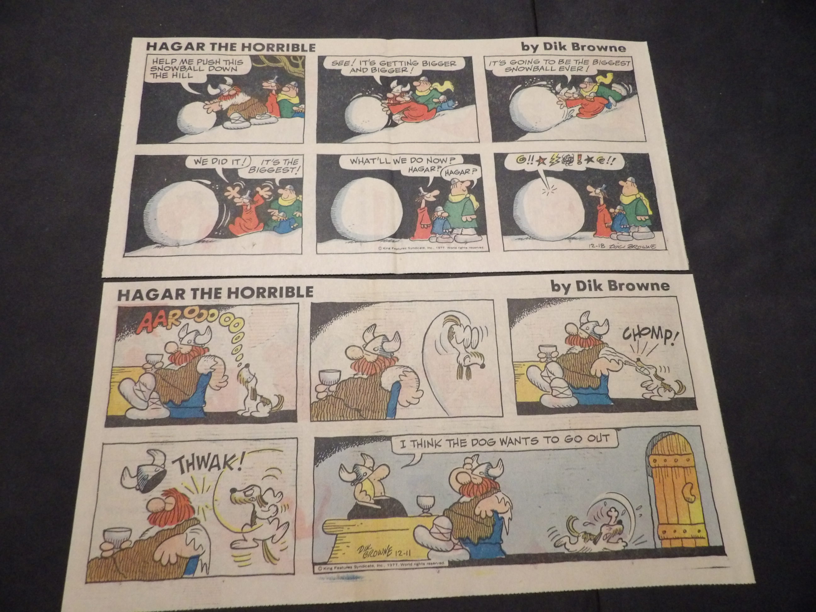 | 0906-0123 | Hagar the Horrible | 1977 - 2TH | G/G/G | $1.00 | by Dik Browne, On reverse Kerry Drake(2TH) (12/11, 12/18) |