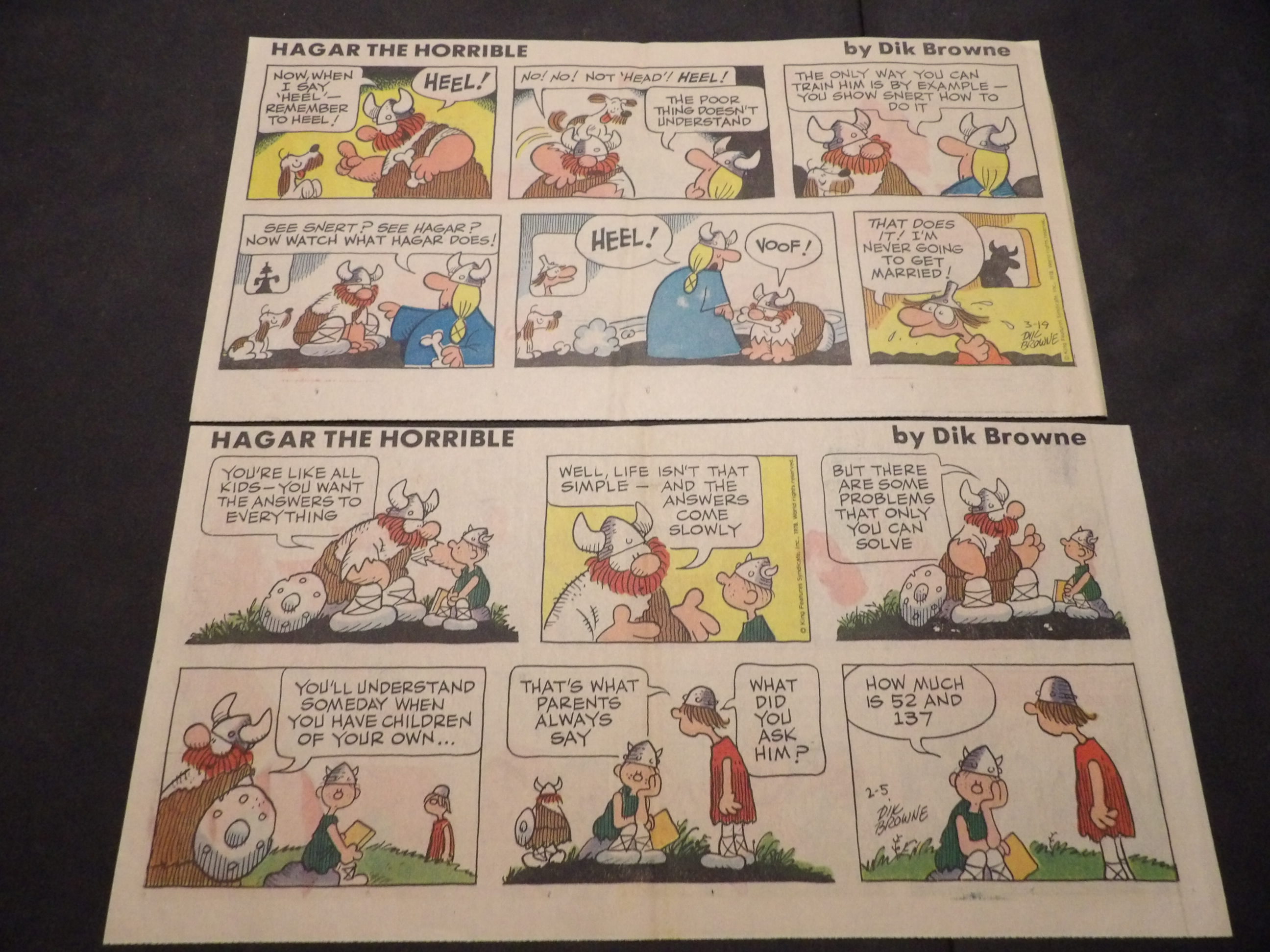 | 0906-0118 | Hagar the Horrible | 1973/04 - 2HT | VG/VG/VG | $6.00 | #9,10, by Dik Browne, On reverse Family Circus(1HT) (4/1, 4/8) |