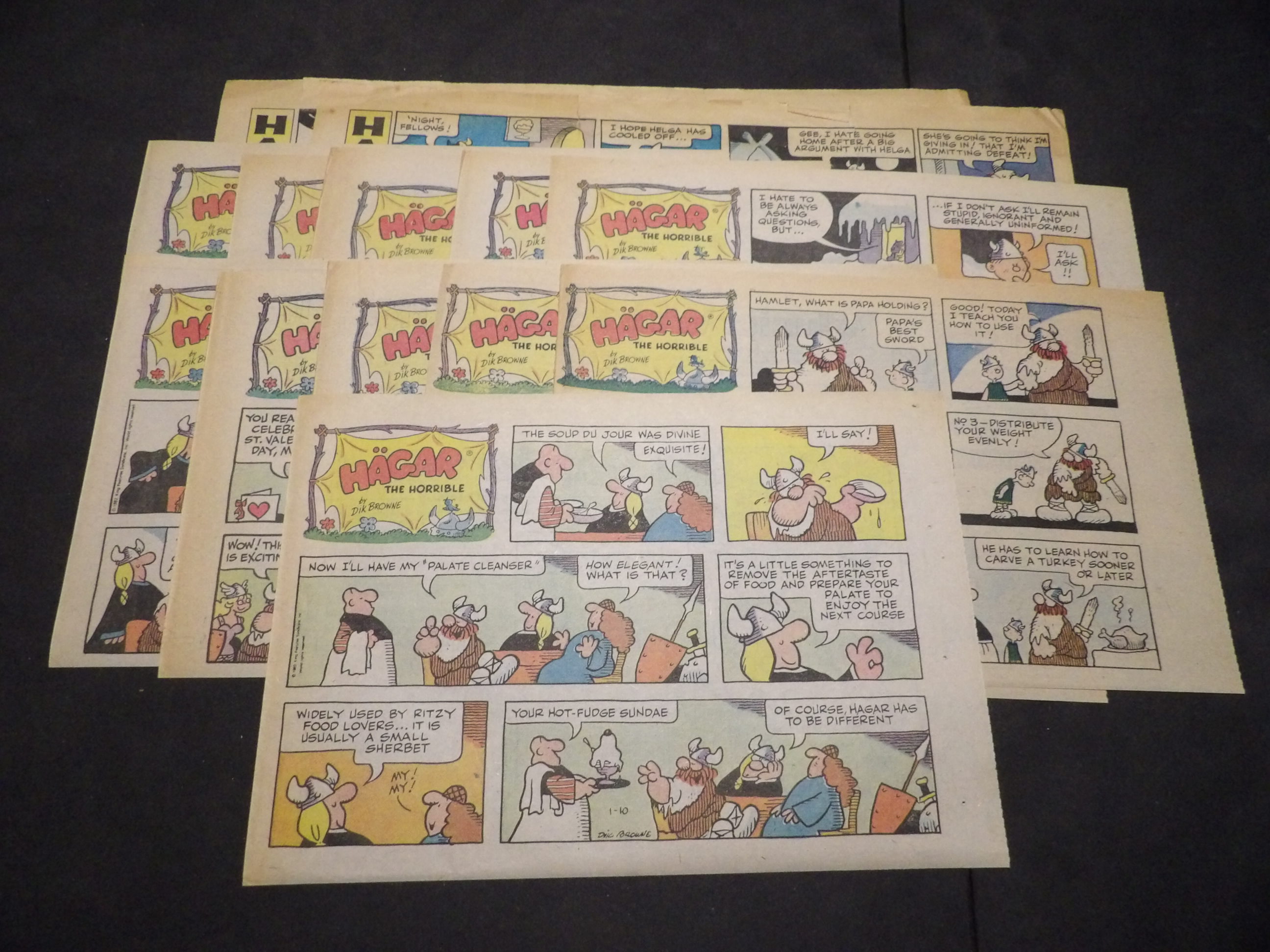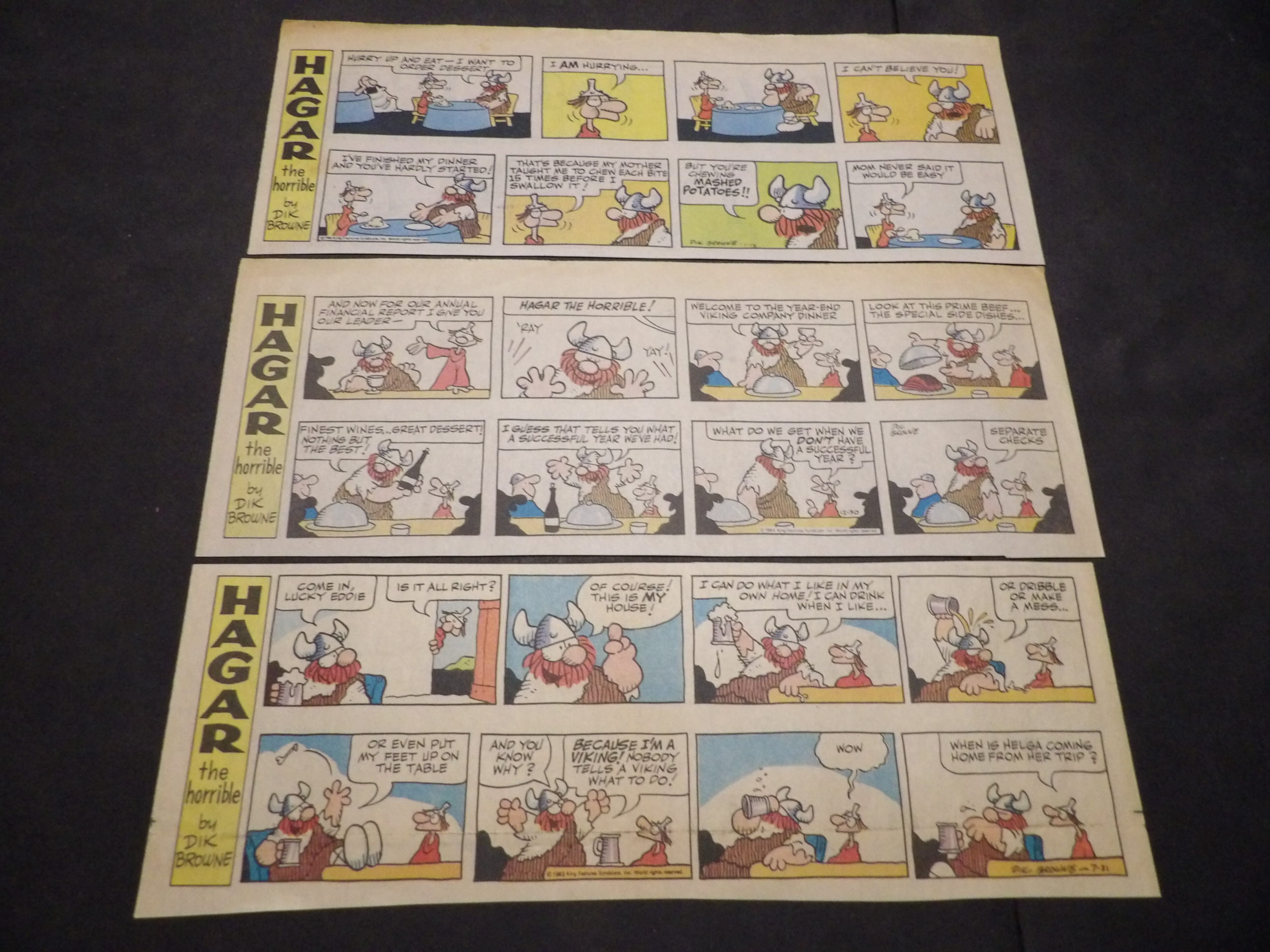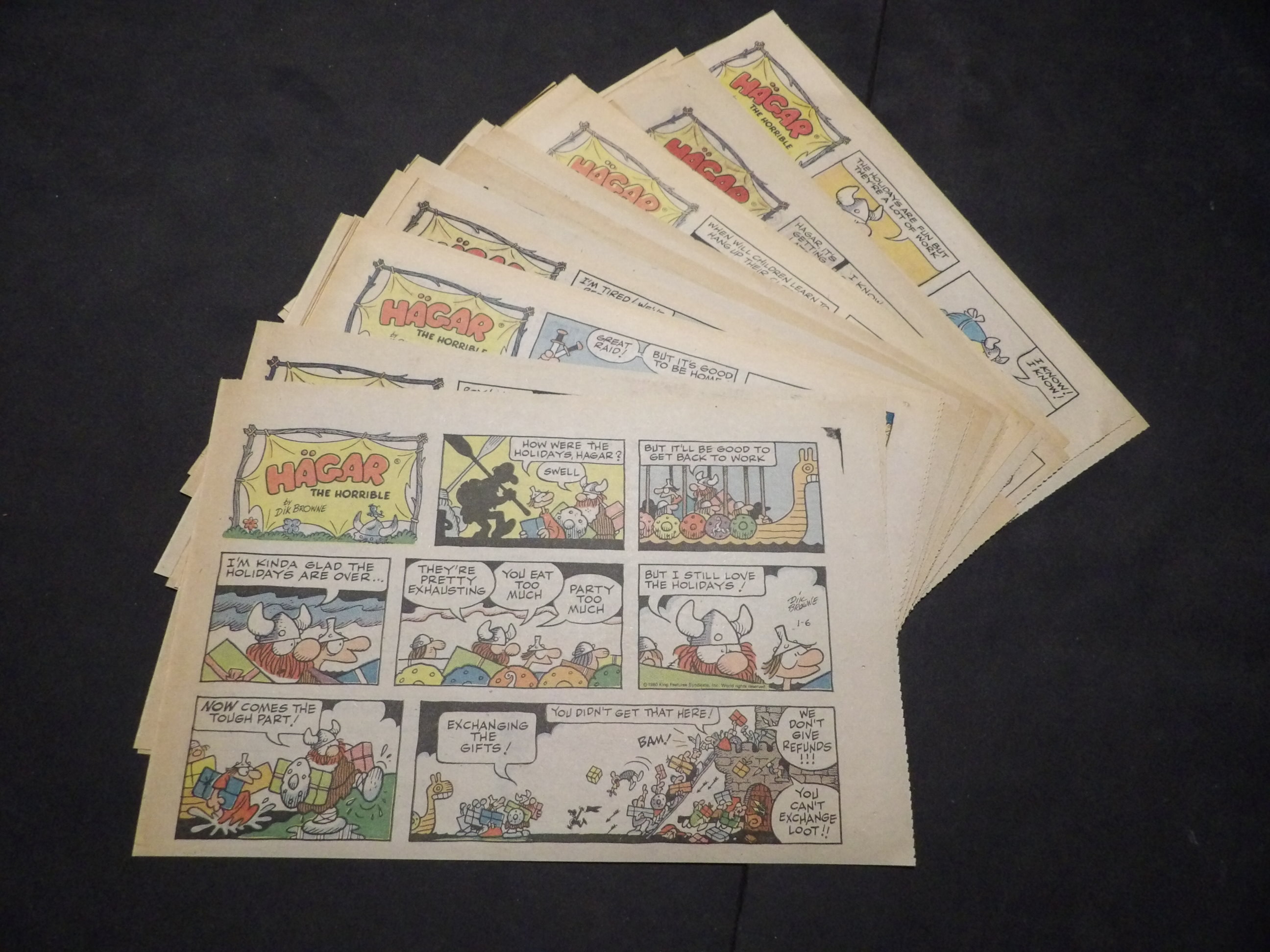 | 0906-0125 | Hagar the Horrible | 1979 - 1TH, 15HT, 6Q | G/G/G-VG | $11.00 | by Dik Browne, On reverse Junior Whirl(15HT), Mary Worth(1TH, 5SX), Judge Parker(1SX) (3/4, 3/25, 4/8, 4/15, 5/27-6/10, 6/24-7/15, 7/29, 8/5, 8/26, 9/9, 9/23-10/21, 12/2, 12/23) |