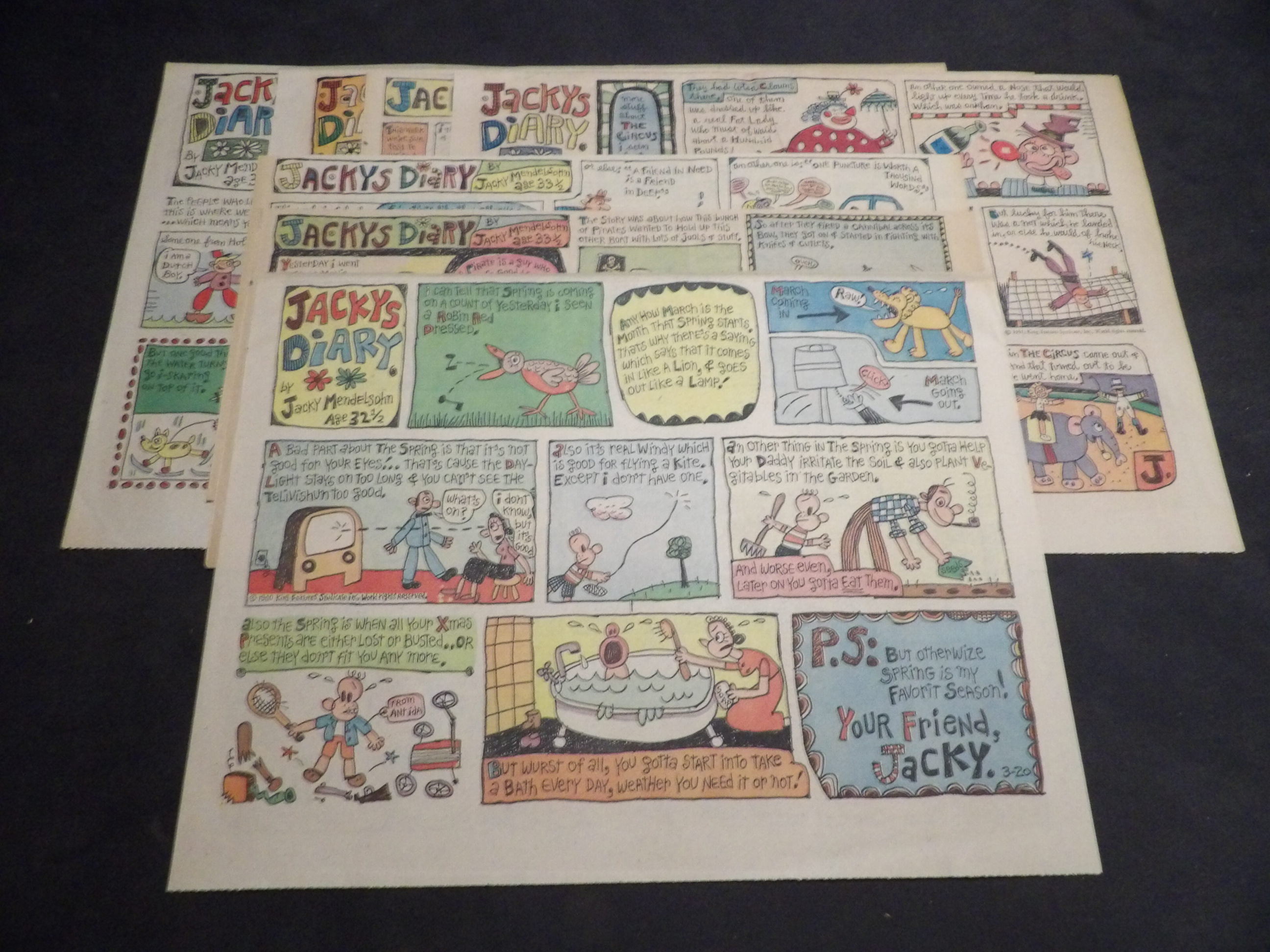 | 0908-0208 | Jacky's Diary | 1960-61 - 4H, 3TH | FR-G/FR-G/G | $3.00 | by Jack Mendelsohn, On reverse Mr. Abernathy(1TH), Mr. Breger(1TH), Heart of Juliet Jones(1TH) (1960:3/20, 12/4 1961:4/2, 4/30, 5/7, 5/28, 6/11) |