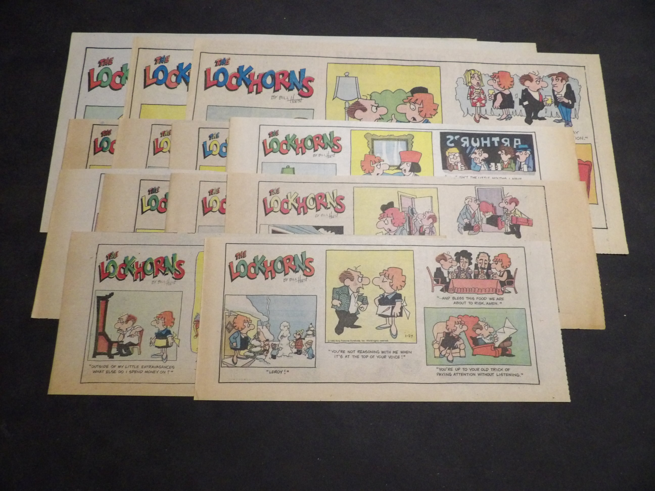 | 0910-0211 | Lockhorns | 1980-82 - 3TH, 10SX | G/G/G-VG | $3.50 | by Bill Hoest, On reverse Carnival(1HT), They'll do it every time(1TH), Family Circus(1TH), Junior Whirl(1TH) (1980:1/27 1981:5/31, 7/19, 7/26, 8/9, 8/23, 9/20, 10/18, 10/25 1982:9/19 1983:2/20 1984:10/7) |