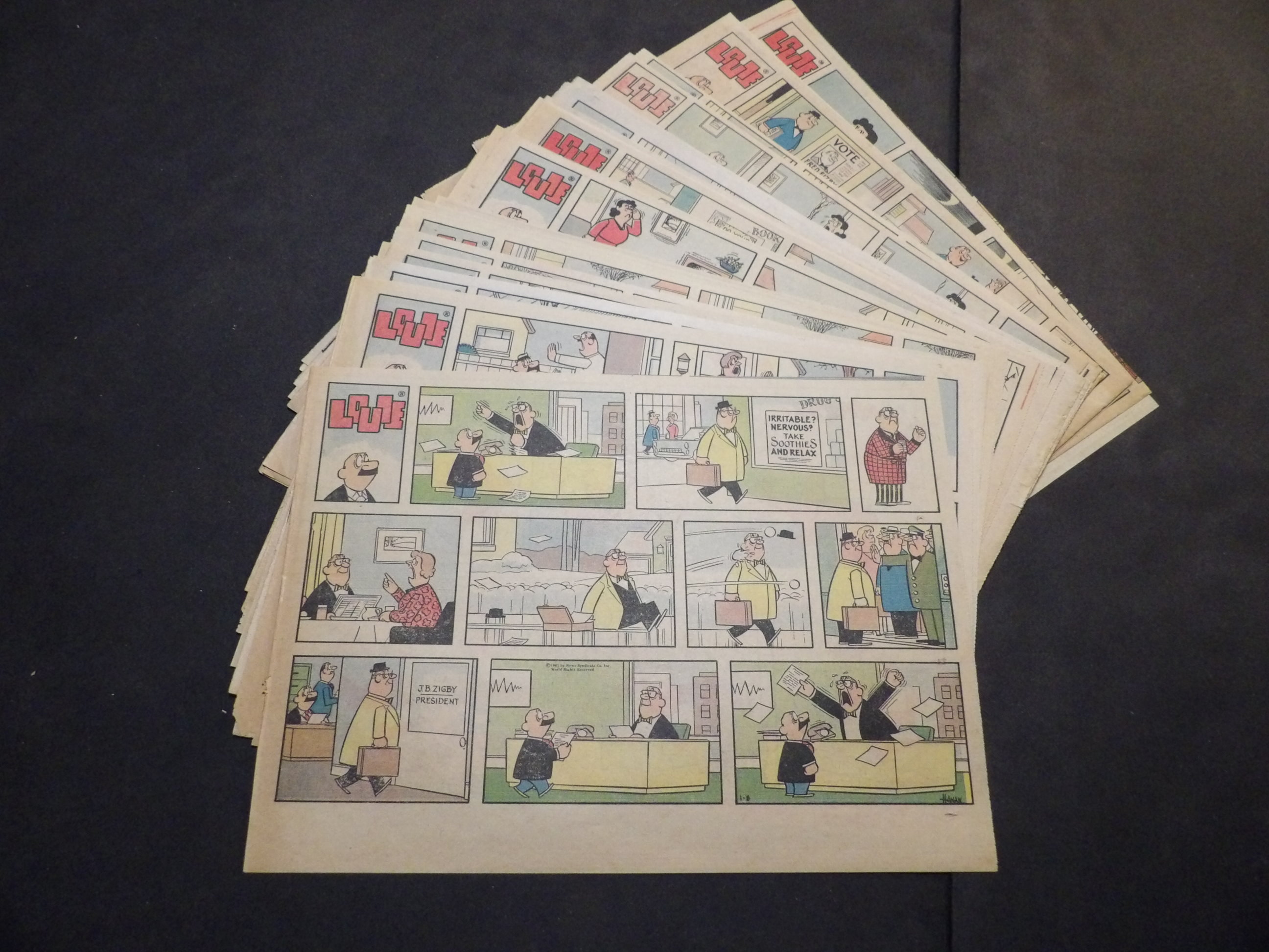 | 0910-0077 | Louie | 1960 - 5T, 7TH, 1HT | G/G/G-VG | $7.75 | by Harry Hanan, On reverse The Good Old Days(5HT), There Oughta be a Law(5HT) (1/3-2/14, 3/20, 5/15, 9/4, 10/23, 11/27, 12/4) |