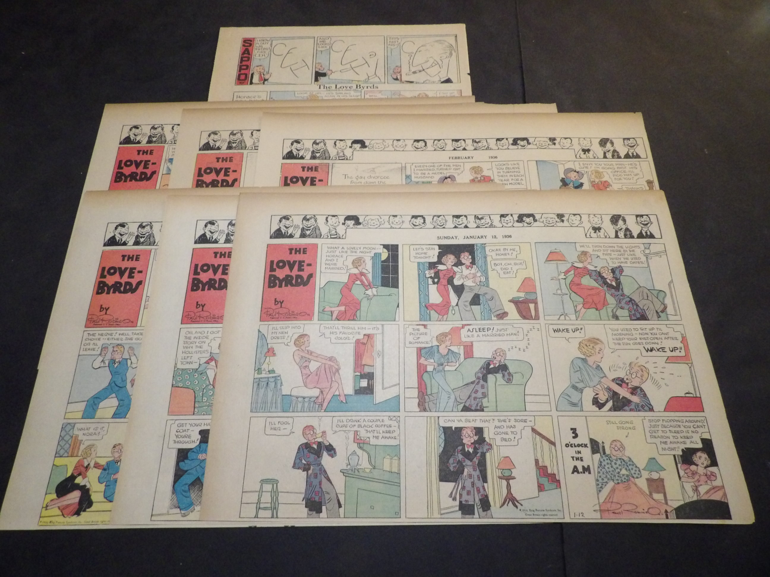 | 0910-0085 | Love-Byrds | 1939-41 - 7H | G/FR-G/G | $3.00 | by Paul Robinson, No reverse (1939:11/26, 1940:2/11, 3/3, 3/10. 3/24, 1941:5/11, 5/18) |