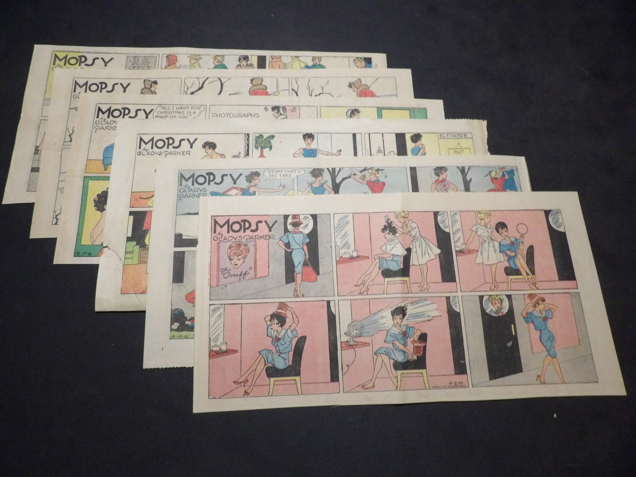 | 0911-0173 | Mopsy | 1962 - 10TH | G/G/VG | $10.00 | by Gladys Parker, On reverse MortyMeekle(1TH), Priscilla's Pop(1TH), Our Boarding House(3TH), Barney Google(1TH), Pogo(1TH), Out Our Way(3TH) (7/29, 8/19-9/9, 9/23, 10/7, 12/2, 12/16, 12/23) |