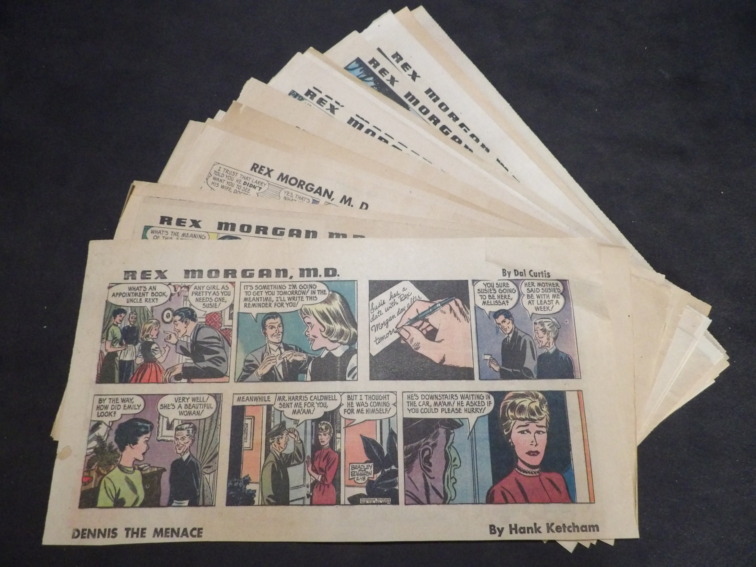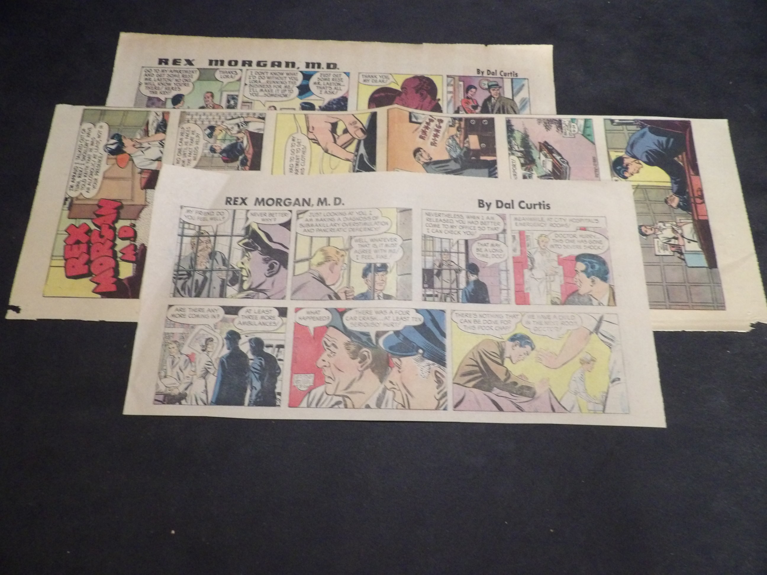 | 0916-0122 | Rex Morgan MD | 1968 - 3T, 2H, 2TH, 2HT | G/G/G-VG | $5.75 | by Bradley & Edgington, On reverse Moon Mullins(2HT), Family Circus(2HT), Tumbleweeds(2HT) (1/7, 1/28-2/11, 3/10, 4/14, 4/28, 5/12, 5/19) |