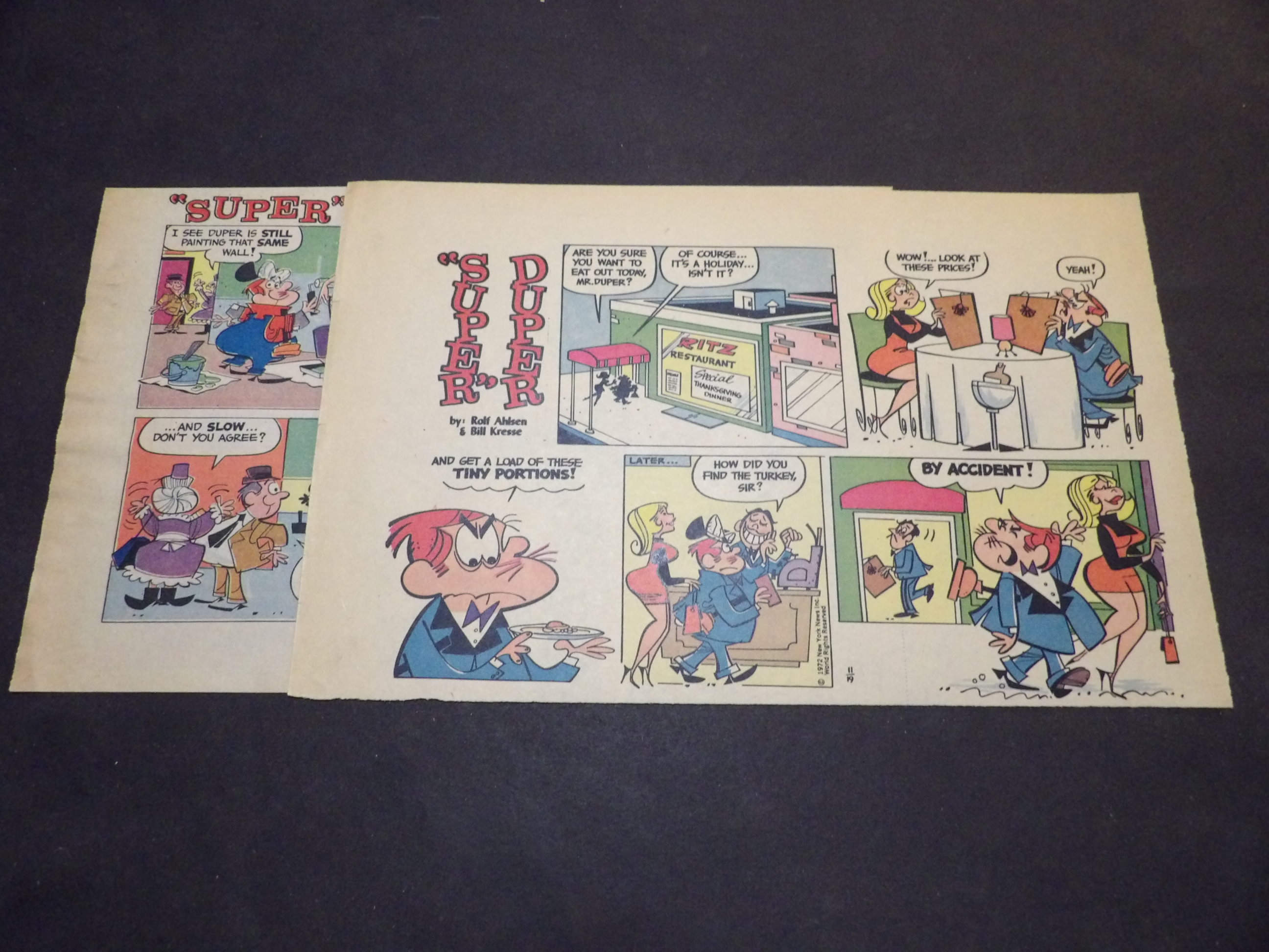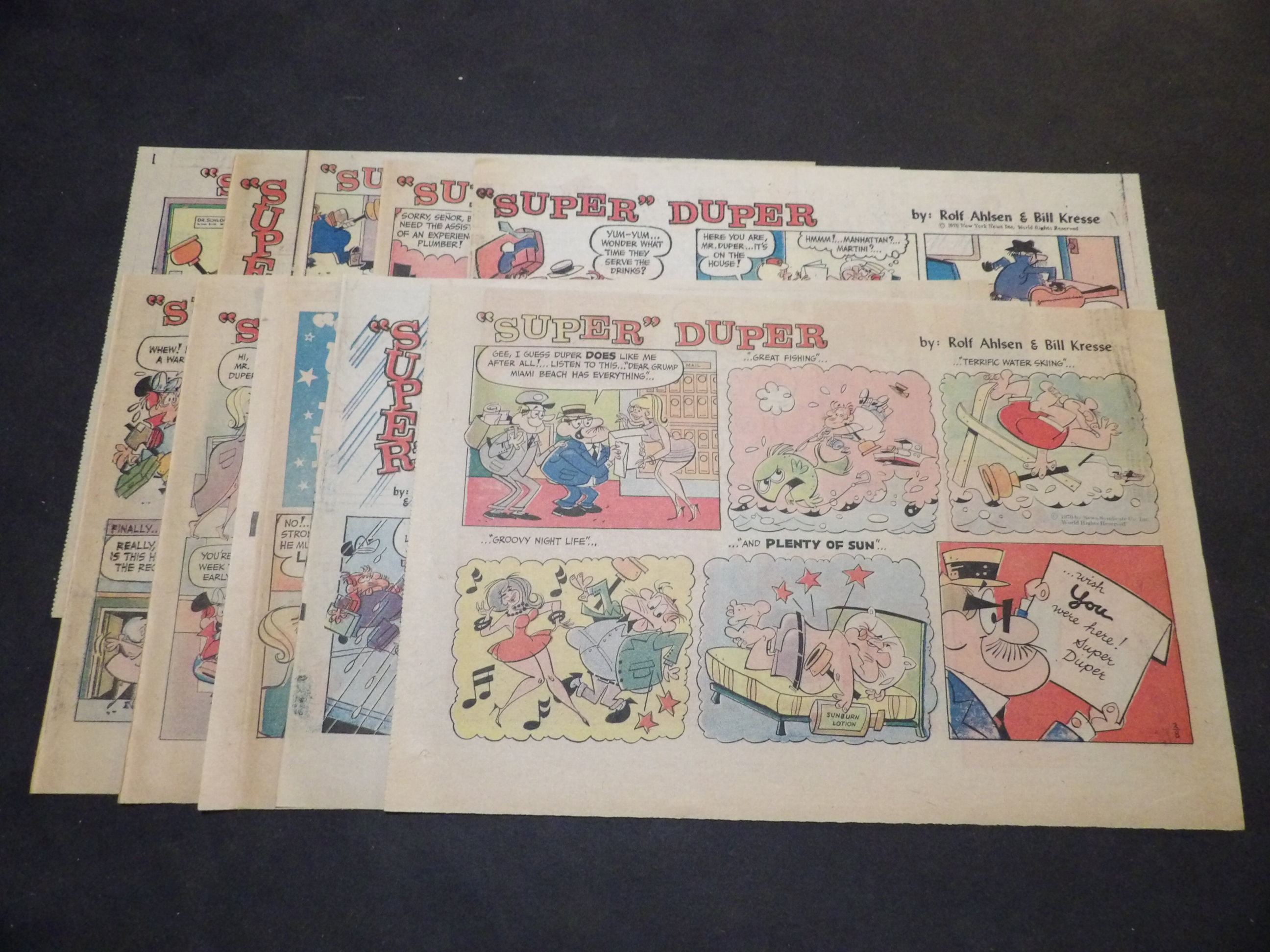 | 0918-0220 | Super Duper | 1970 - 10HT | G/G/VG | $3.50 | by Rolf Ahlsen & Bill Kresse, On reverse Pottsy(1HT), Hapless Harry(1HT) (2/8, 2/22, 5/10, 5/17, 6/21, 7/14, 8/9, 9/20, 10/25, +1) |