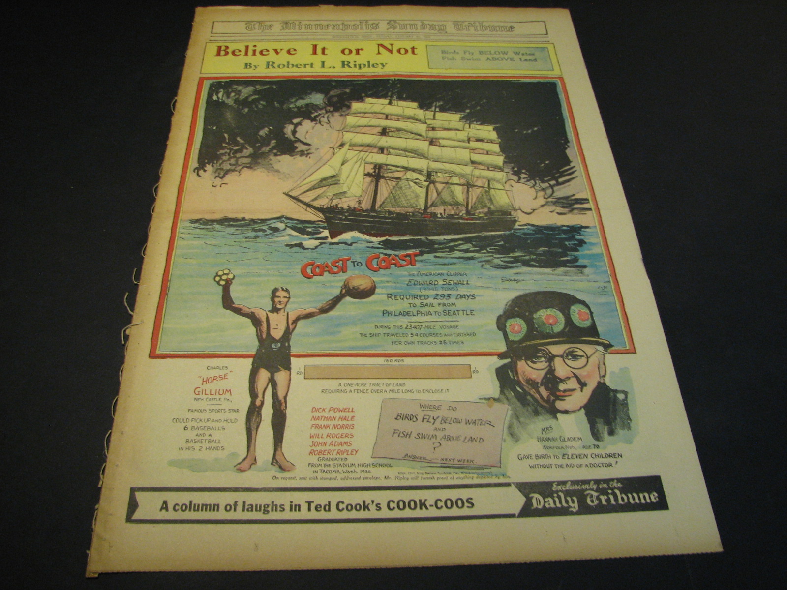 | SM0060-0072 | Minneapolis Tribune - 1937/11/21 | 6-Fulls BW | $6.00 | Magazine - Color Cover by DB Holcomb, Color Full Page Comics Ripleys Believe it or not |