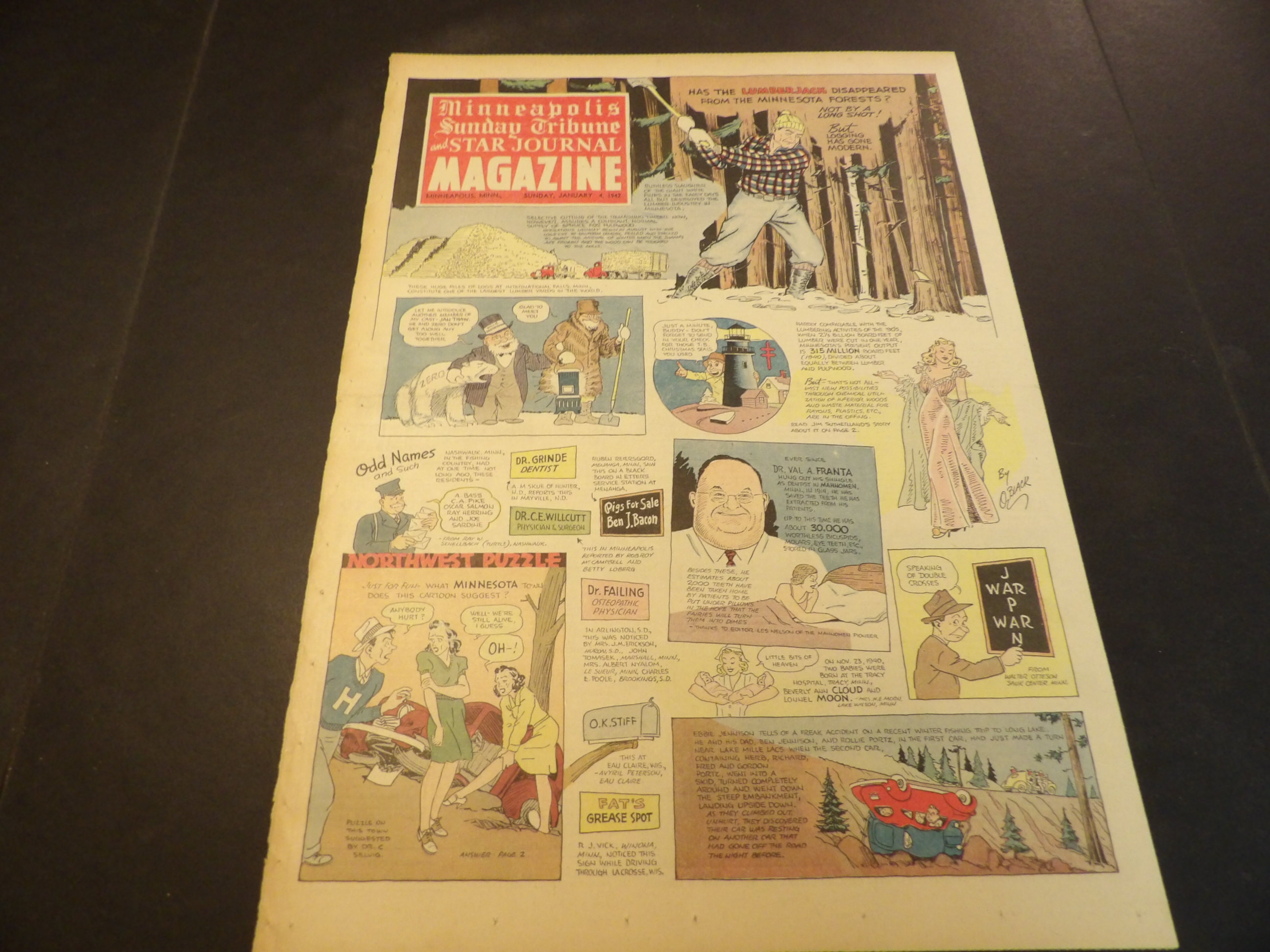 | SM0070-0115 | Minneapolis Tribune and Star Journal - 1942/01/11 | 3-Fulls BW | $2.00 | Magazine - Color Cover by Oz Black, Full-color Grin an' Bear it(T), Ginny Simms |