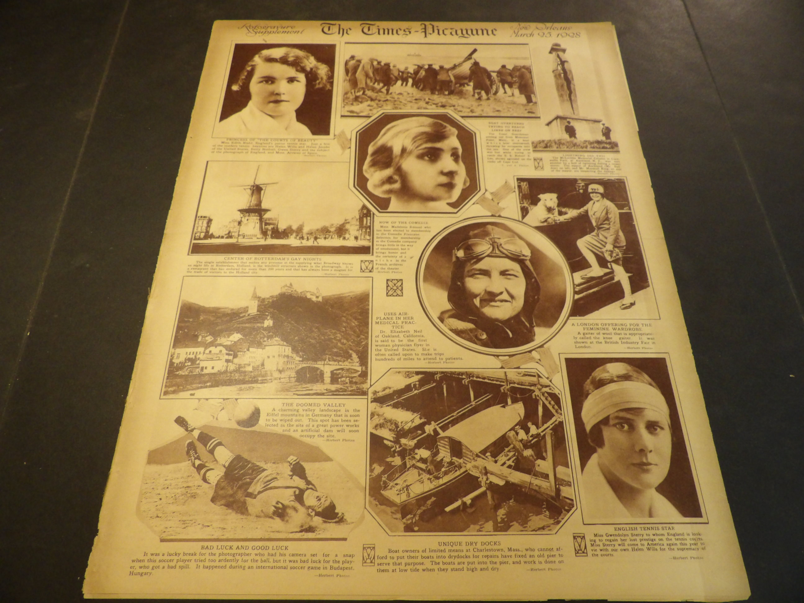 | SM0090-0096 | New Orleans Times-Picayune - 1928/07/15 | 4-Fulls BW | $2.00 | Rotogravure - Charlie Chaplin, Amelia Earhart, Bobby Jones, Mary Pickford, Dolores Del Rio |