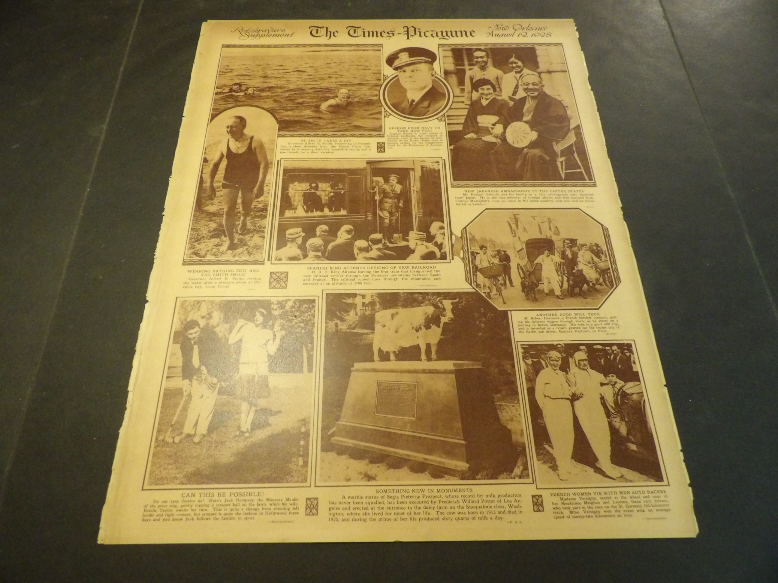 | SM0100-0004 | New Orleans Times-Picayune - 1928/08/12 | 4-Fulls BW | $2.00 | Rotogravure - Jack Dempsey, Greta Garbo, Thomas Edison, George Eastman |