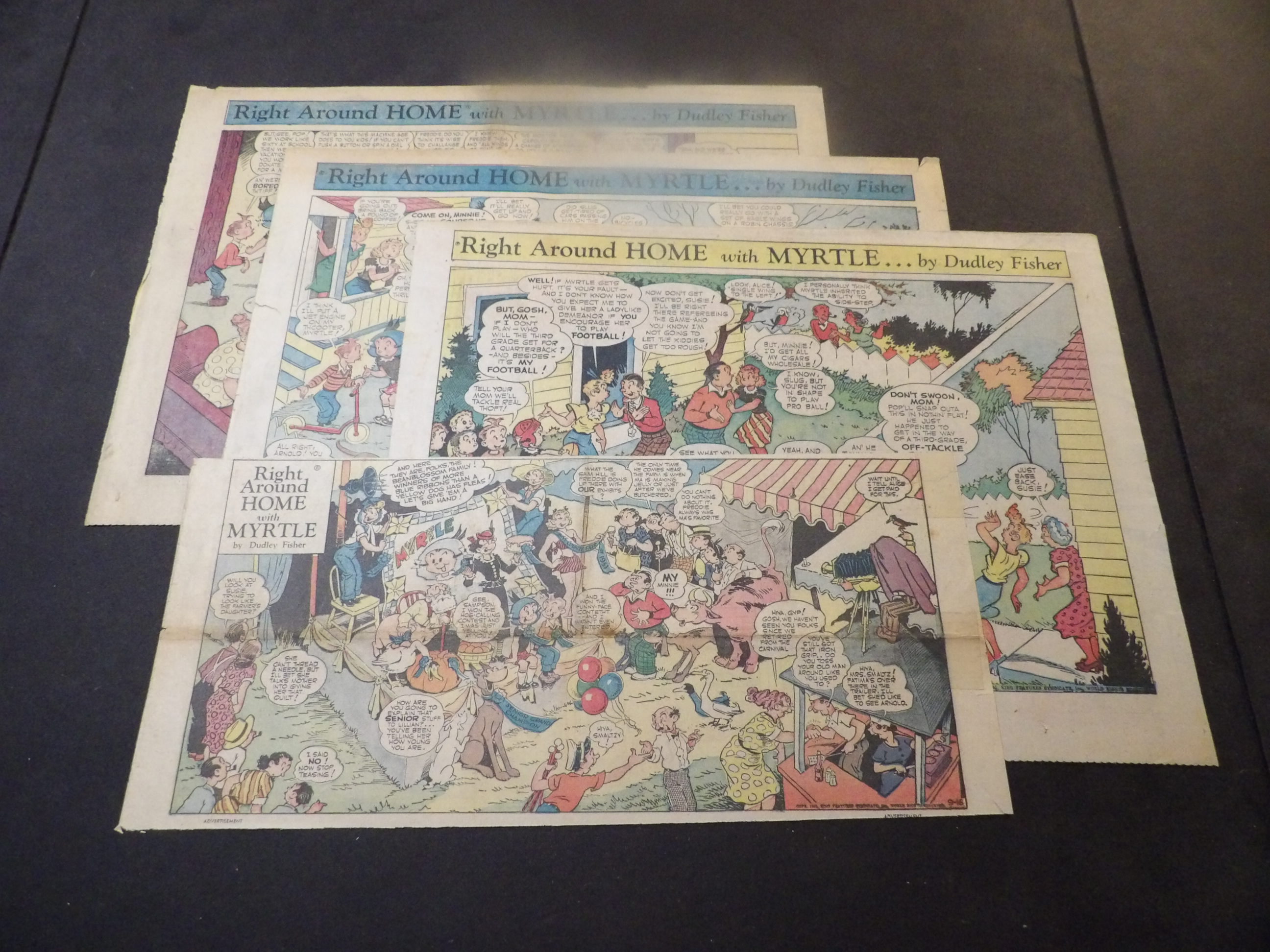 | S1210-0141 | 1961 - 7H, 15TH | VG/VG/VG | $14.50 | On reverse Bringing Up Father(2TH), Henry(2TH) Hubert(4TH), Pogo(1TH), There Oughta be a Law(1TH), Barney Google(3TH), Mr. Abernathy(3TH) (1/22-2/5, 2/26, 4/2, 4/16, 4/23, 5/28, 6/11, 7/16-8/6, 9/10, 9/17, 10/8, 10/29-11/12, 11/26, 12/24, 12/31) | |